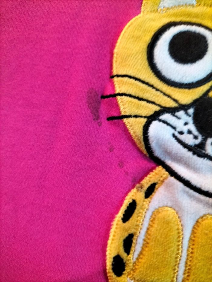 Joli t-shirt avec petit chat en relief,qui malheureusement est tâché, mais reste encore très joli.