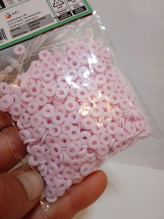 Neuf ! - Perles de loisirs plates de couleur roses claires + fil inclus (2 mètres). 👉 Pour info, d'autres perles dispo dans mon dressing. * Rappel : -5% pour 3 articles, -10% pour 5 articles. #sambaetmayline21Perles #sambaetmayline21LoisirsCréatifs