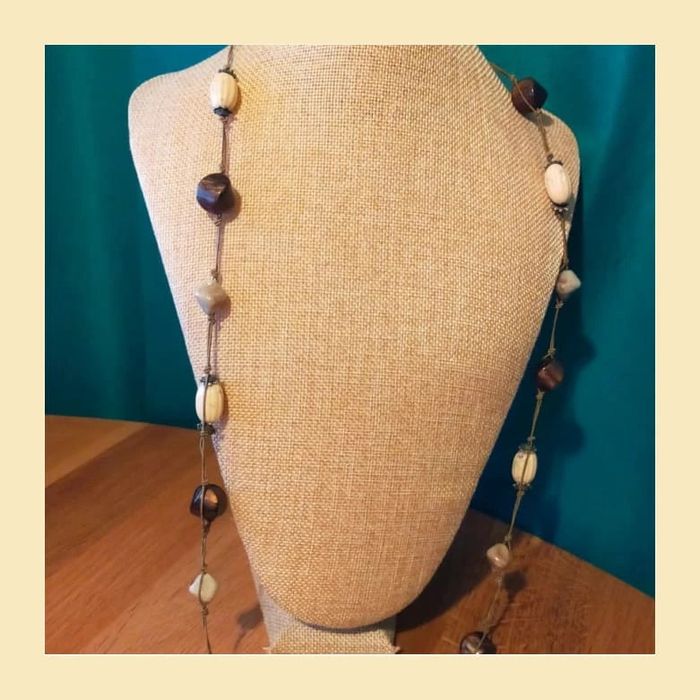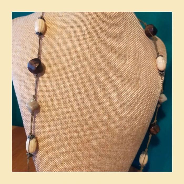 Collier long vintage perles irrégulières – tons blanc, marron & gris - photo numéro 9