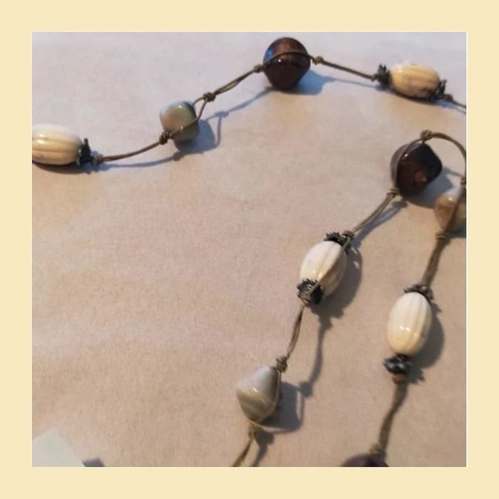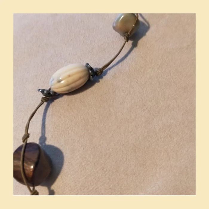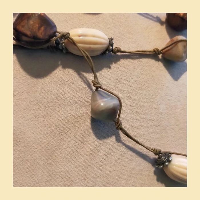 Collier long vintage perles irrégulières – tons blanc, marron & gris - photo numéro 7