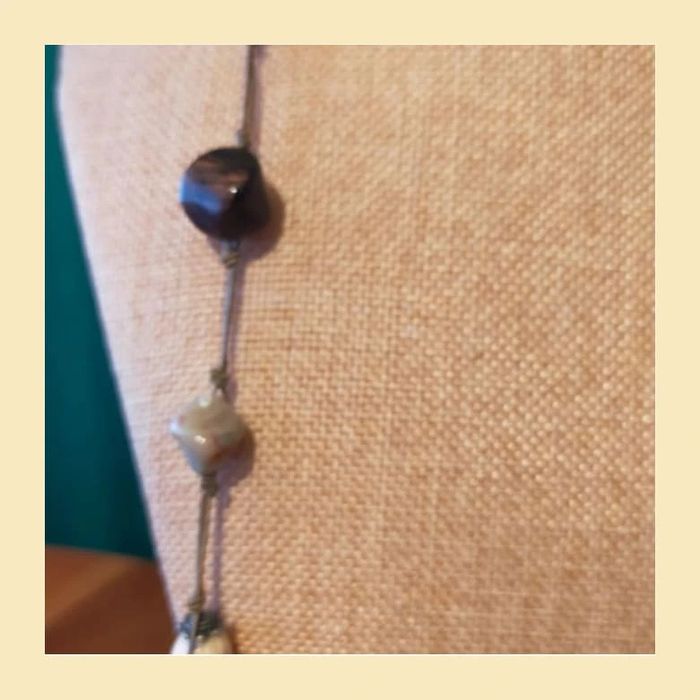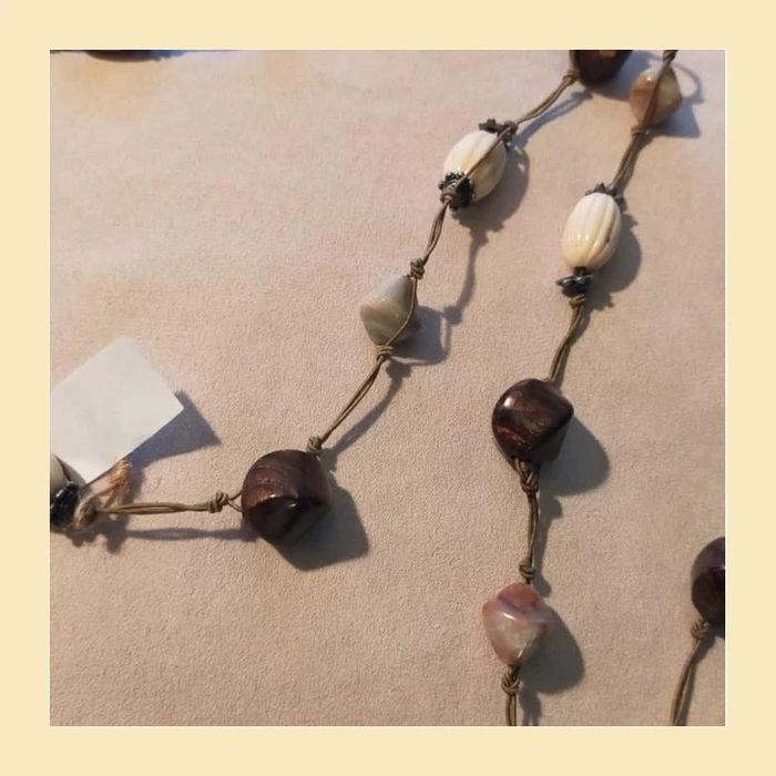 Collier long et léger au style naturel et vintage, composé de perles de formes irrégulières en blanc, marron et gris, montées sur un fil noué de type chanvre ou lin. Les perles sont espacées et la disposition asymétrique donne un effet décontracté chic, parfait pour un look bohème, ethnique ou estival. 🔹 État : très bon état 🔹 Matières : perles fantaisie (probablement plastique ou résine) + cordon textile naturel 🔹 Longueur : long (env. 80–90 cm) – se porte en un ou deux tours 🔹 Fermoir : sans – enfilage direct 📦 Envoi soigné – pièce douce, pleine de charme naturel. LBIJ #colliervintage #perlesirrégulières #blancmarrongris #bijouxnature #stylebohème #bijouxfemme #collierlong #vintagestyle #bijouxdoux #accessoirechic #fibretextile #lookethnique #bijouoriginal