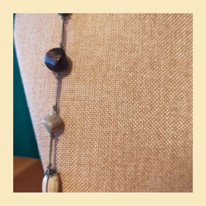 Collier long vintage perles irrégulières – tons blanc, marron & gris - photo numéro 8