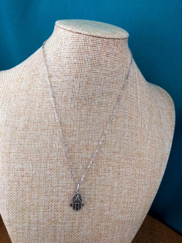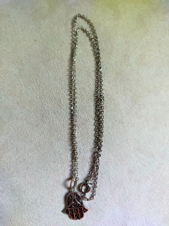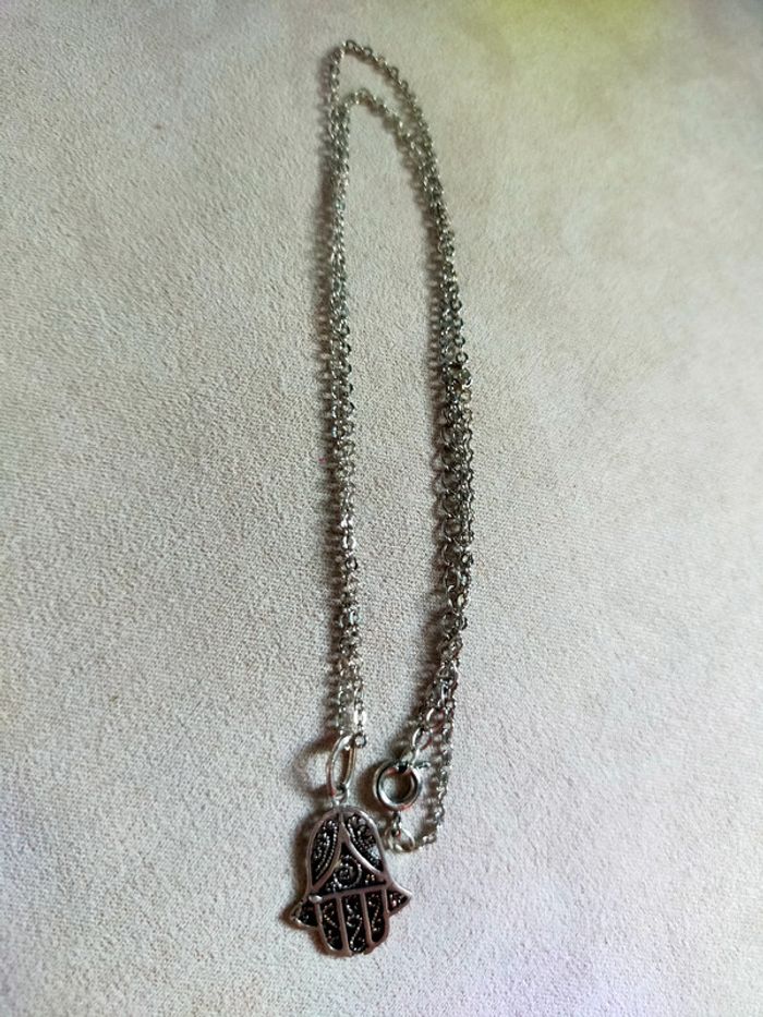 Collier chaîne argentée avec pendentif main de Fatima - photo numéro 2