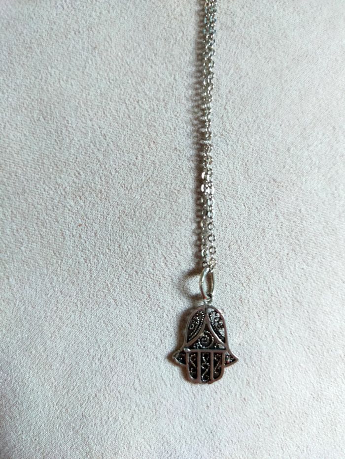 Collier chaîne argentée avec pendentif main de Fatima - photo numéro 5