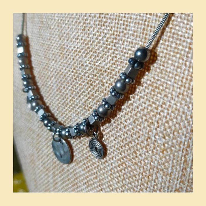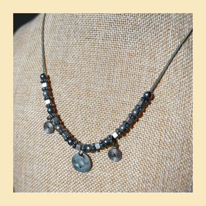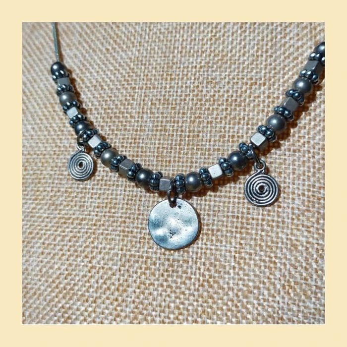 Collier perles grises & breloques spirales – Élégance assurée - photo numéro 1