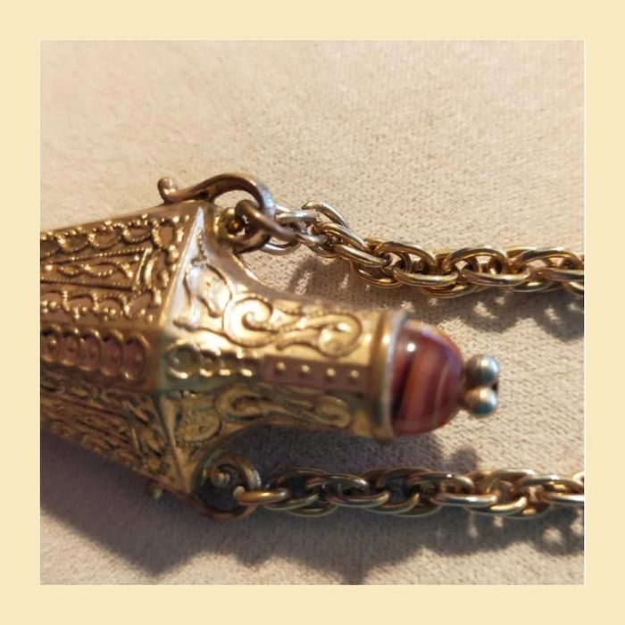 Collier vintage doré avec pendentif gravé style amphore - photo numéro 1
