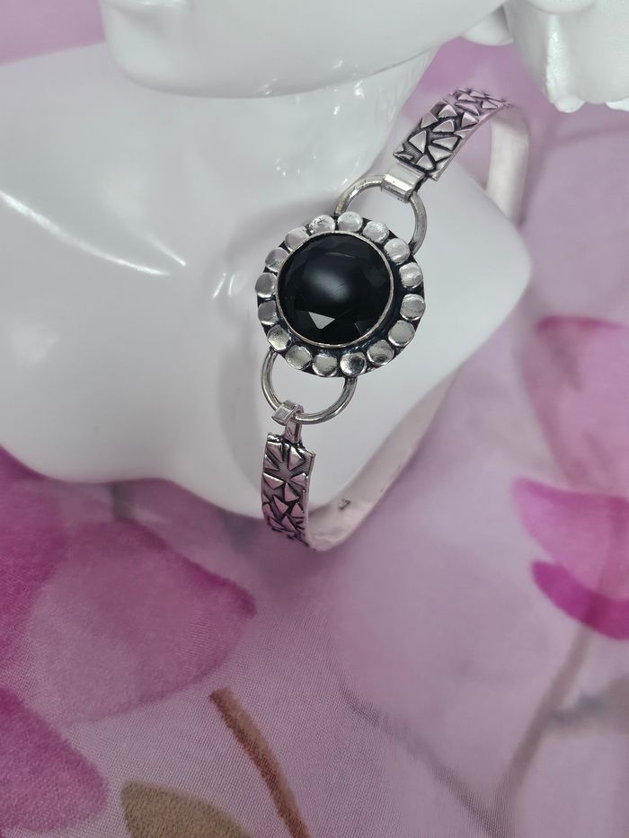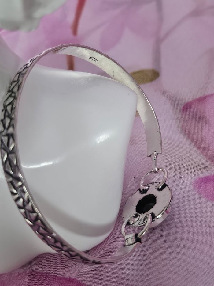 Bracelet texturé en argent sterling 925 avec pierre onyx noir Neuf sans étiquette, jamais porté Piece unique en pierre naturelle SERTIE Poinçonné 925 Ajustable ( s adapte a tout type de poignets)