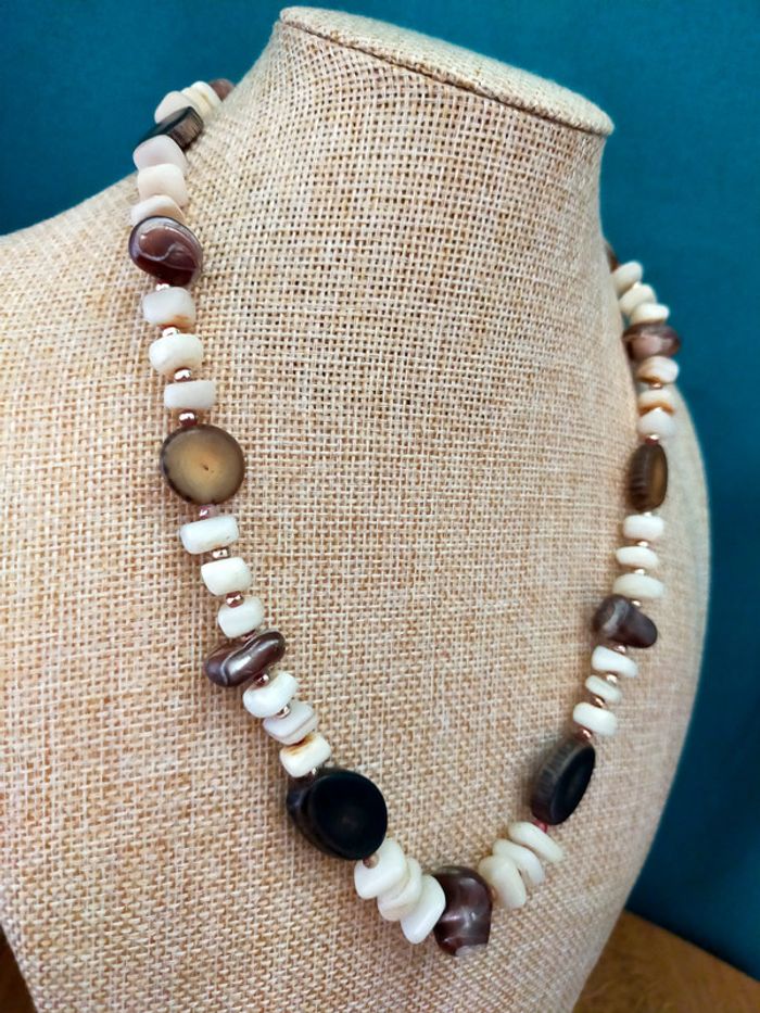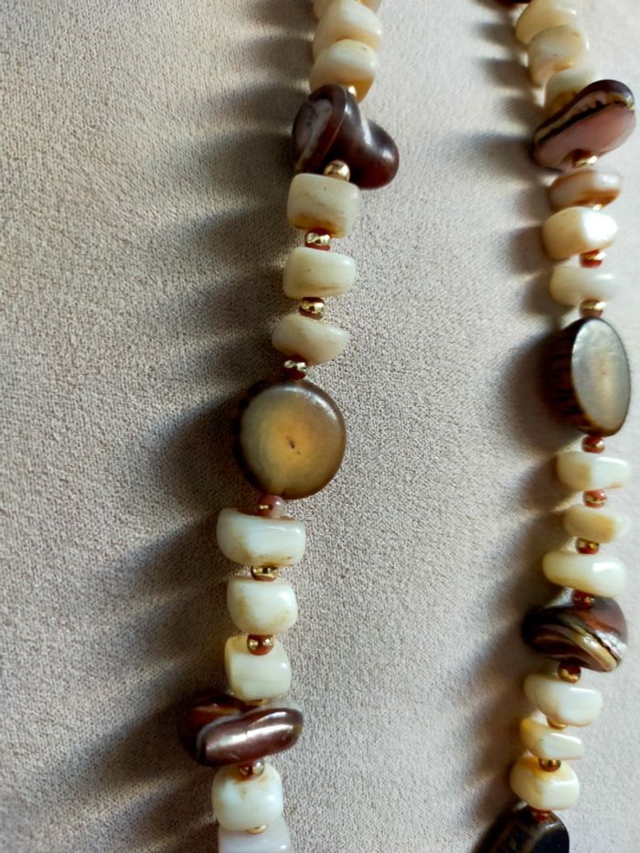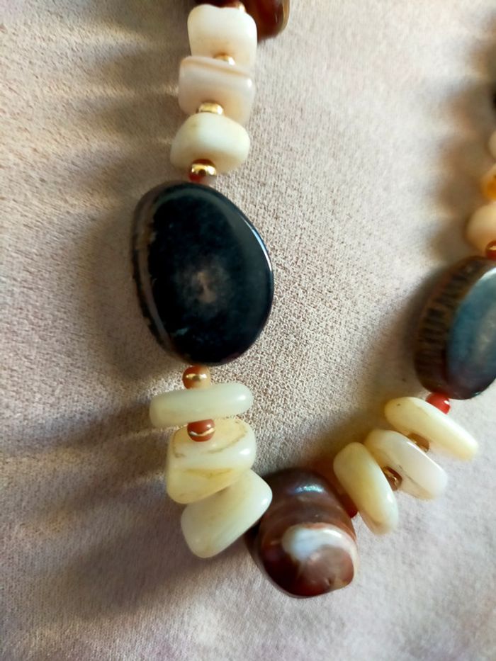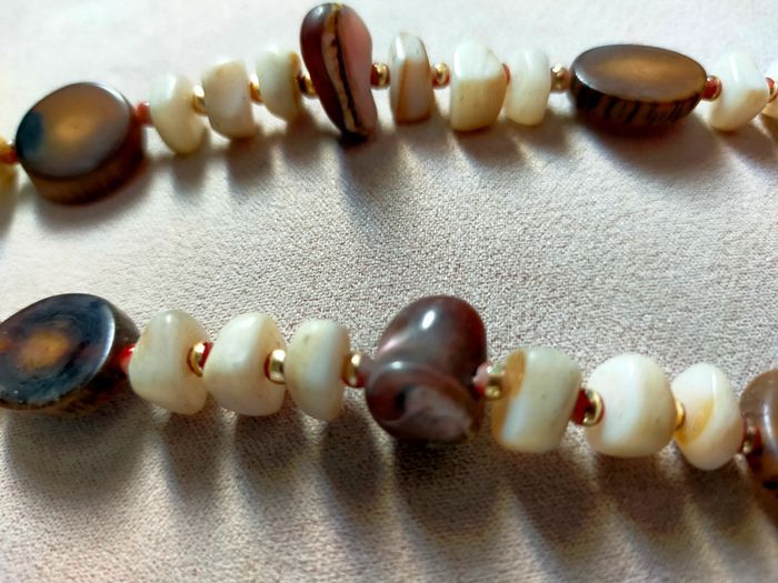 Collier ethnique perles naturelles et nacre teintée – style artisanal vintage - photo numéro 1