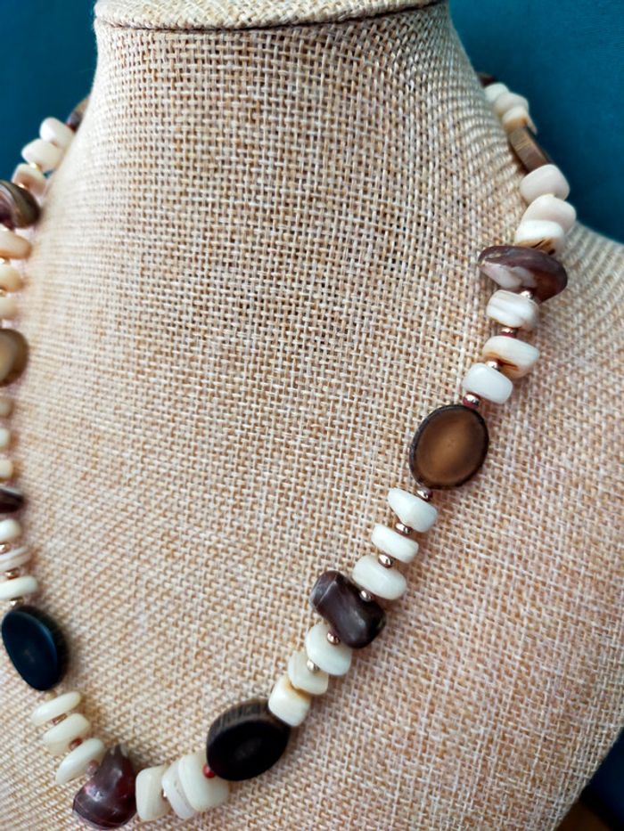 Collier ethnique perles naturelles et nacre teintée – style artisanal vintage