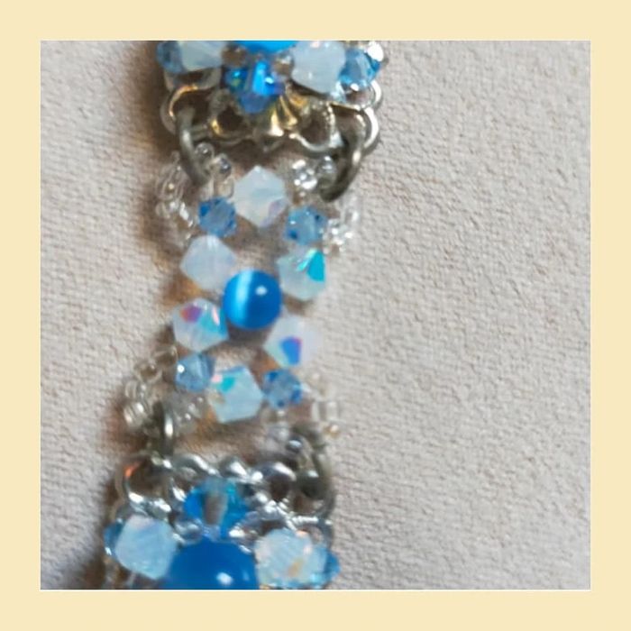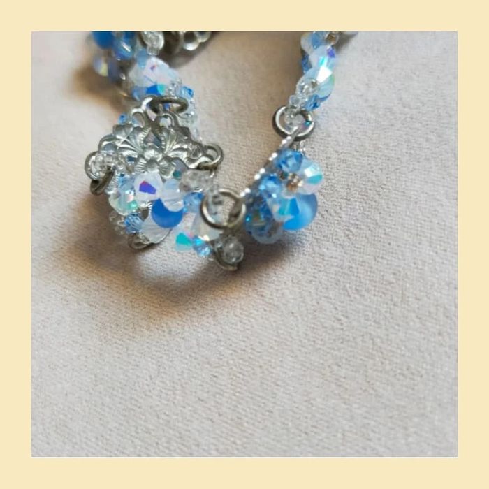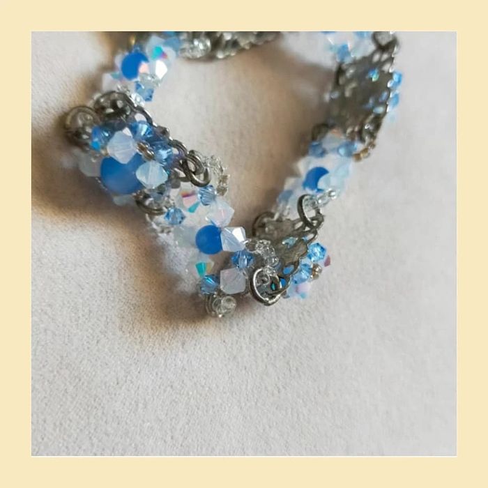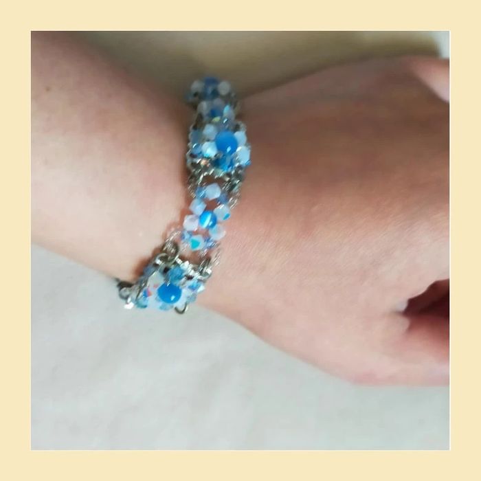 Bracelet raffiné mêlant perles bleu pâle et bleu profond, probablement en cristal, montées avec des éléments en métal argenté. ✨ Effet brillant et lumineux, parfait pour habiller un poignet avec élégance. 🌙 Idéal pour une tenue habillée ou pour ajouter une touche de charme à un look quotidien. LBVIN #bracelet #bijouxfemme #perlesbleues #cristal #elegant #braceletfantaisie #argenté