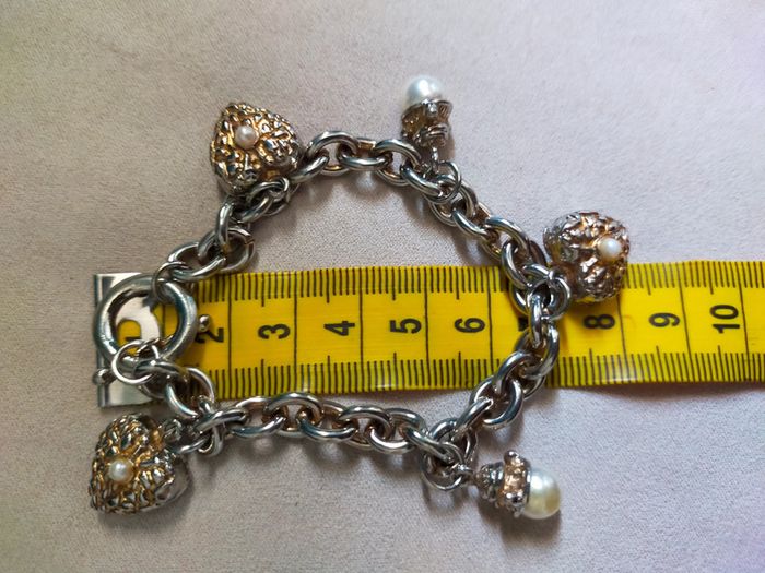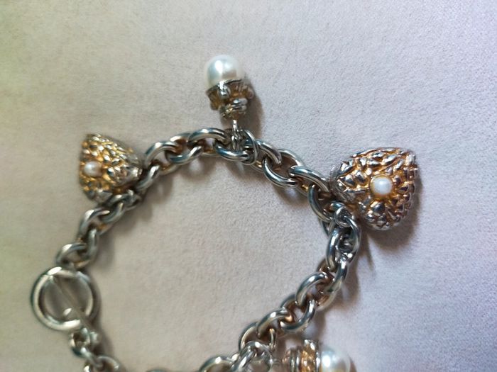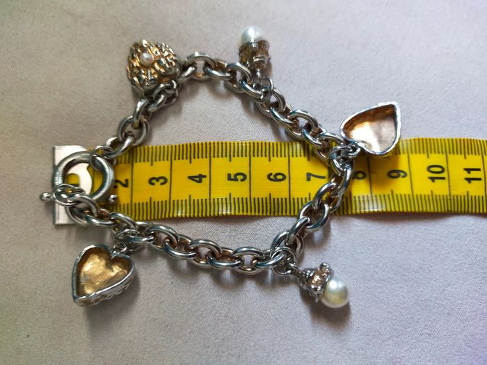 Bracelet chaîne argentée à charms vintage – Cœurs & perles nacrées - photo numéro 9