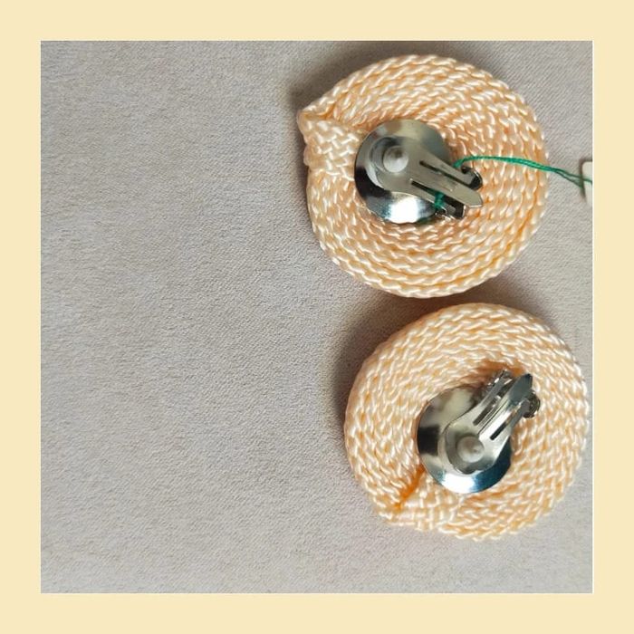 ✨ Superbes boucles d’oreilles clip vintage, faites main, au style délicieusement rétro. 🎀 En forme de rond, elles sont réalisées en corde torsadée ou lacet textile travaillé, dans un joli coloris saumon doux qui apporte une touche chaleureuse et élégante. 📌 Idéales pour un look vintage ou bohème chic, sans nécessiter de trous d’oreilles. LBIJ #bouclesdoreilles #clip #vintage #faitmain #bijouxfemme #stylebohème #accessoirevintage