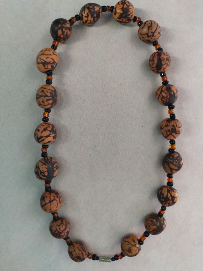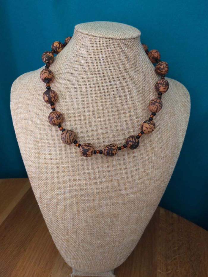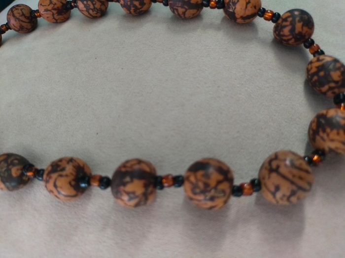 Collier Terres d’Ailleurs – Perles brun marbré & perles de rocaille - photo numéro 1