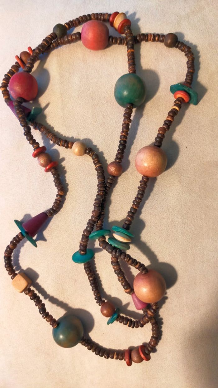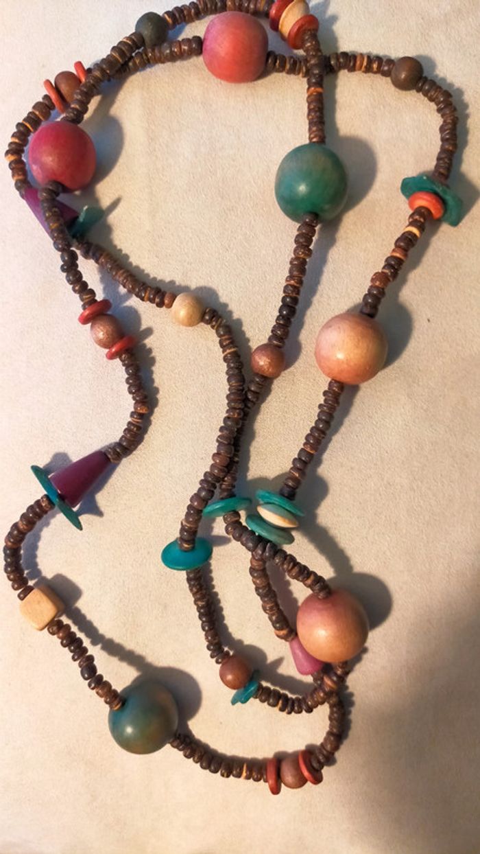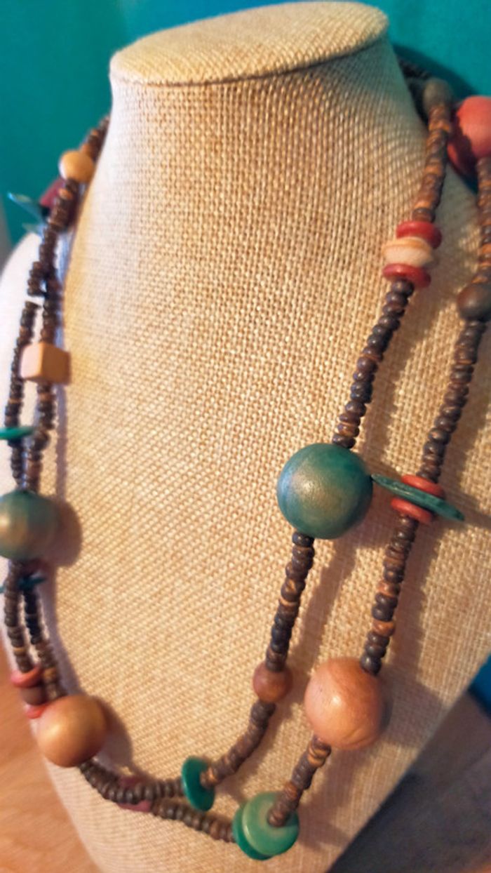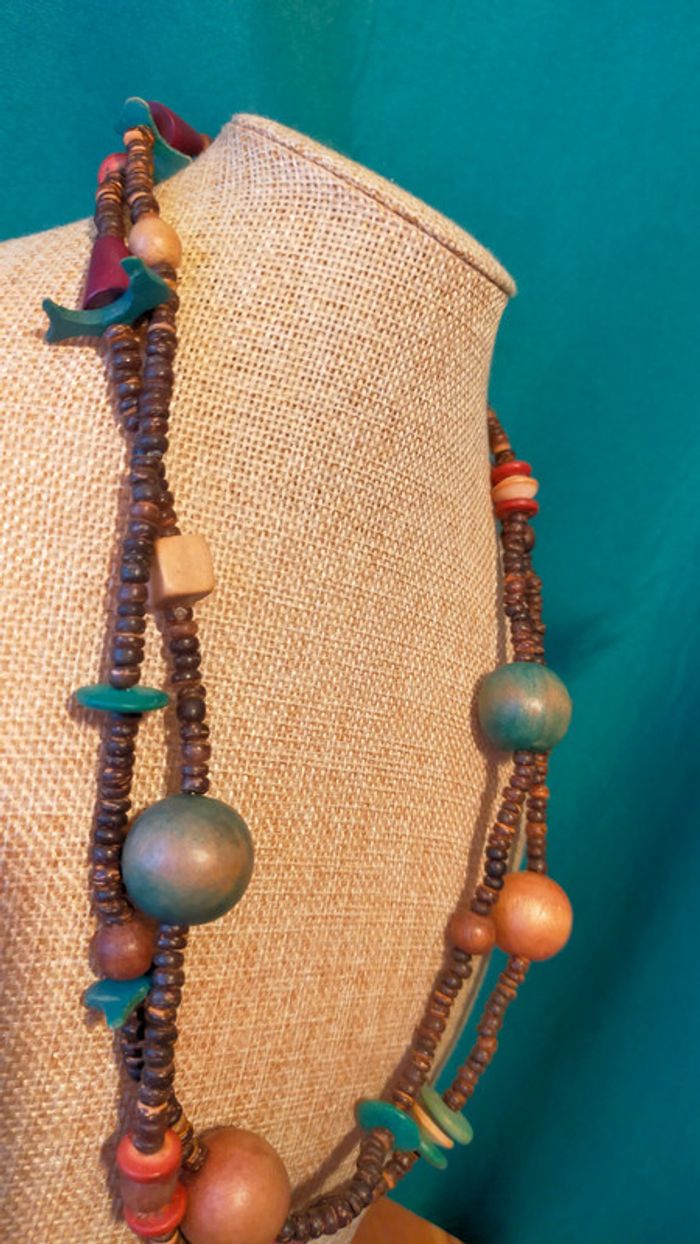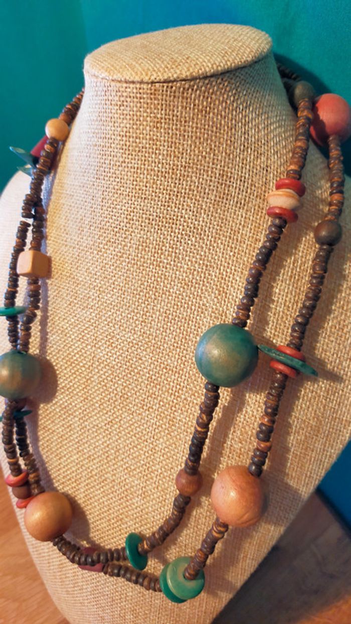 Collier ethnique en perles bois naturelles – Collection Terres d’Ailleurs - photo numéro 2
