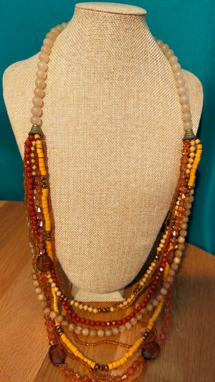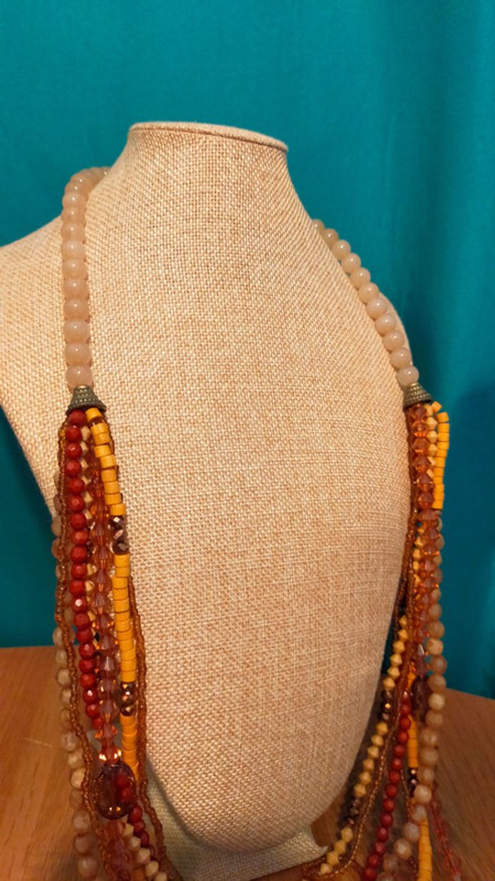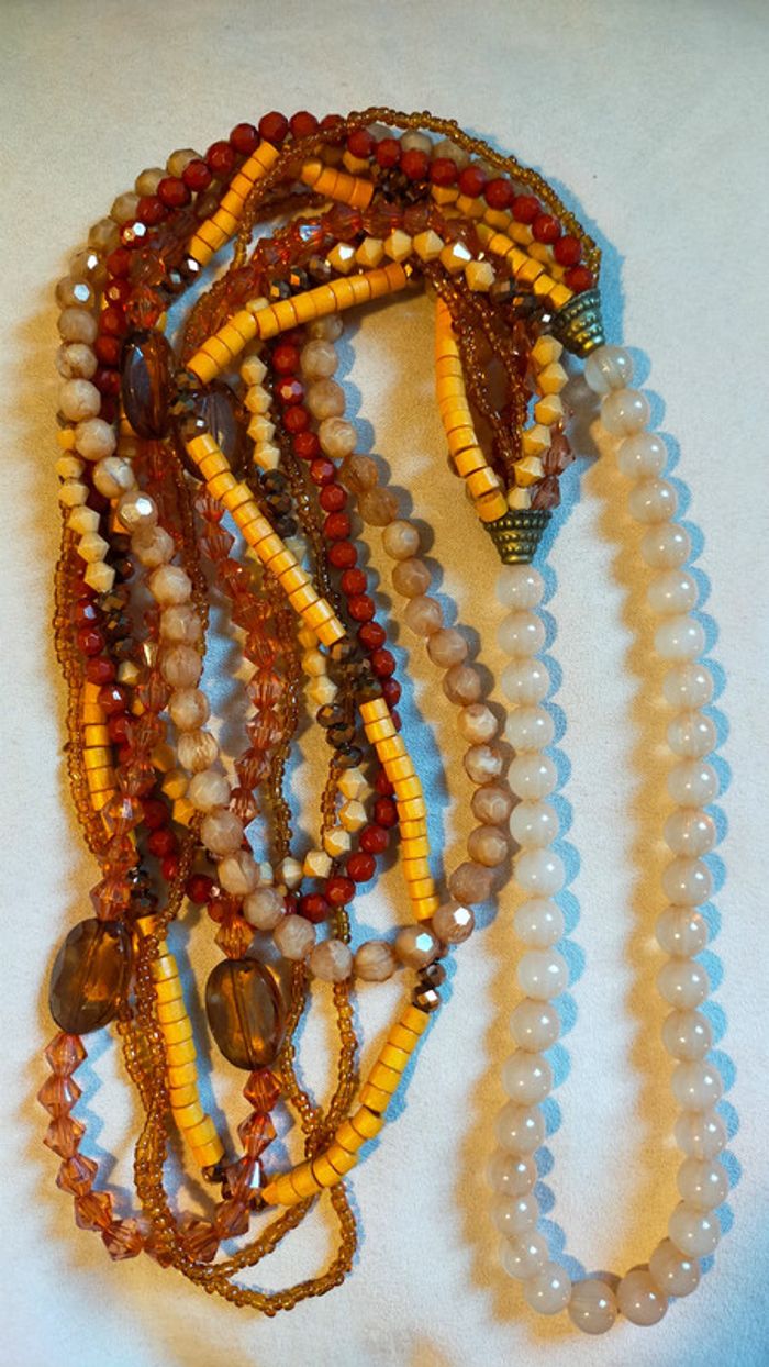 Collier vintage multi-rangs perles ambre et ocre – Collection Sable & Ébène - photo numéro 1