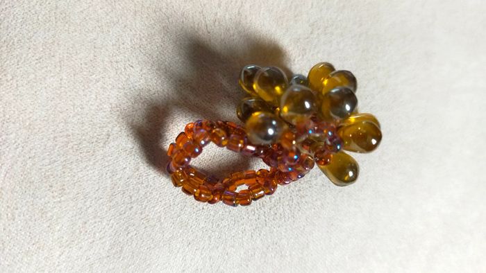 Bague perles ambre orangé – fait main – taille 48 - Collection Sable & Ébène - photo numéro 1