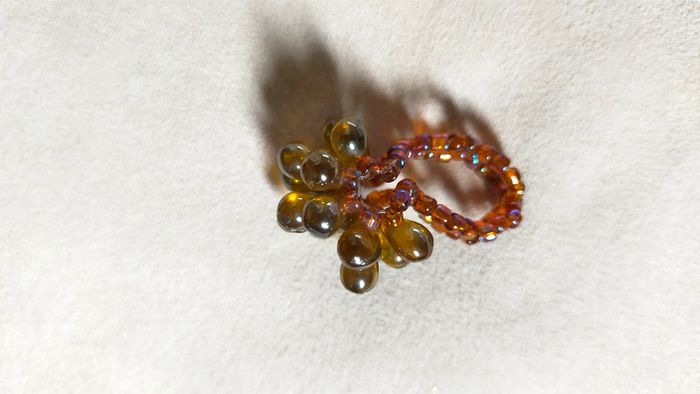Jolie bague artisanale composée de perles de rocaille irisées et de perles en forme de gouttes couleur ambre. Son design floral et chaleureux évoque le soleil, la terre, et les matières naturelles. 💡 Une pièce originale et lumineuse, parfaite pour apporter une touche bohème ou estivale à ta tenue. 💍 Taille : 48 (Europe) – correspond à un petit doigt ou phalange 🎨 Couleurs : ambre, orange irisé, reflets dorés 🧵 Matière : perles en verre, fil élastique tissé ✨ Style : bohème, fait main, floral, artisanal 📦 État : Très bon état 📌 Collection : Sable & Ébène 🎁 Possibilité d’envoi en lot ou d’ajouter un petit cadeau surprise en cas de plusieurs achats ! 💌 Je soigne l’envoi & l’emballage. Envoi rapide. #bague #faitmain #perles #bijouxfantaisie #taille48 #bijoubohème #sableetébène #verre #floral #orange #bagueartisanal