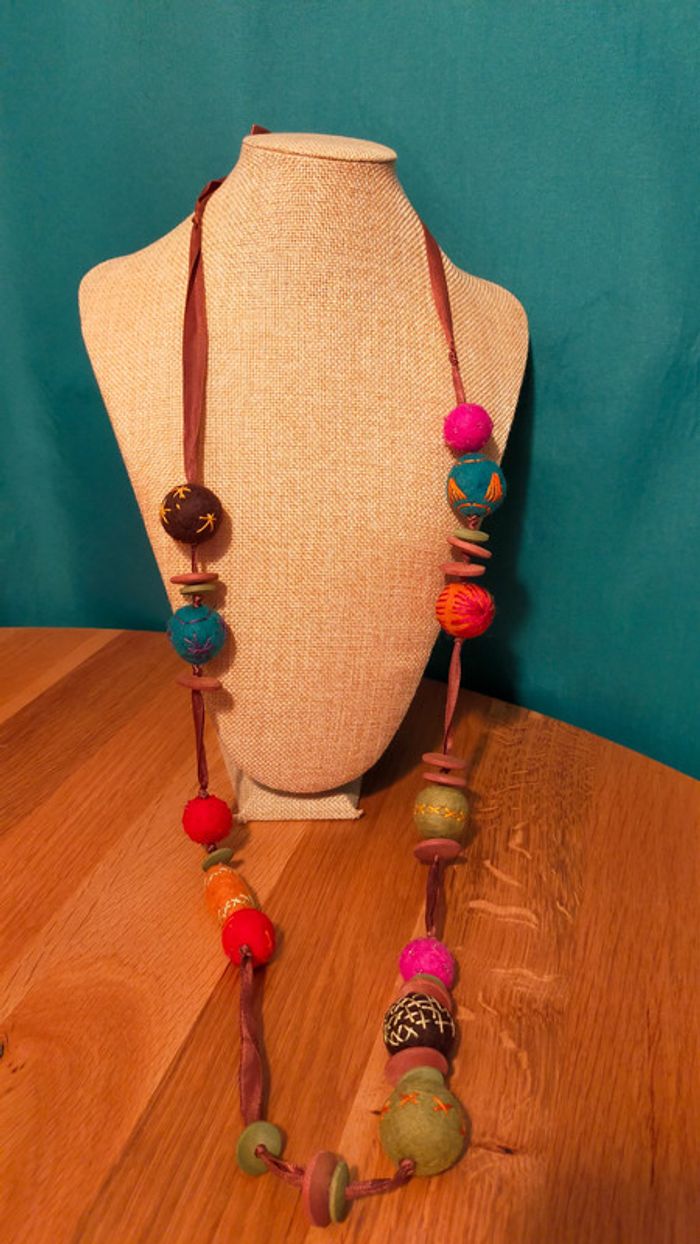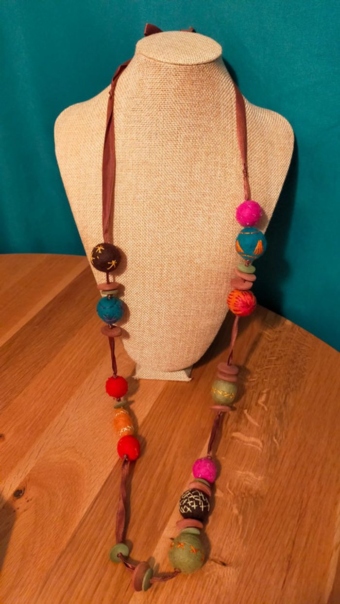 Collier artisanal en perles de feutrine brodées – Collection Terres d’Ailleurs - photo numéro 1