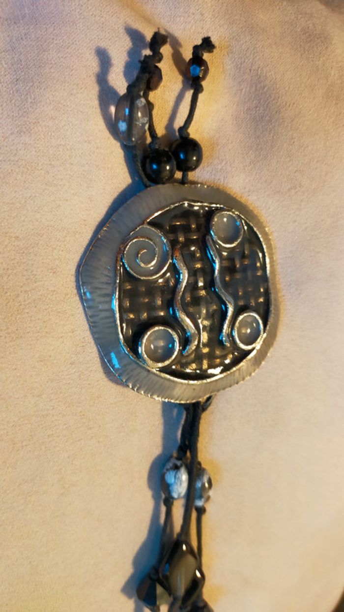 Collier long médaillon ethnique noir et argent – Collection Terres d’Ailleurs - photo numéro 5