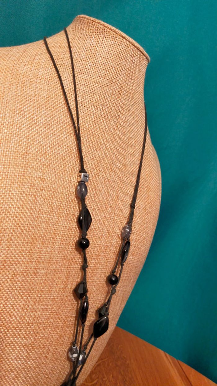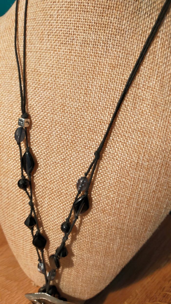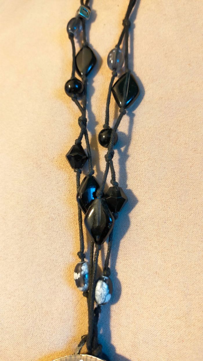 Collier long médaillon ethnique noir et argent – Collection Terres d’Ailleurs - photo numéro 7