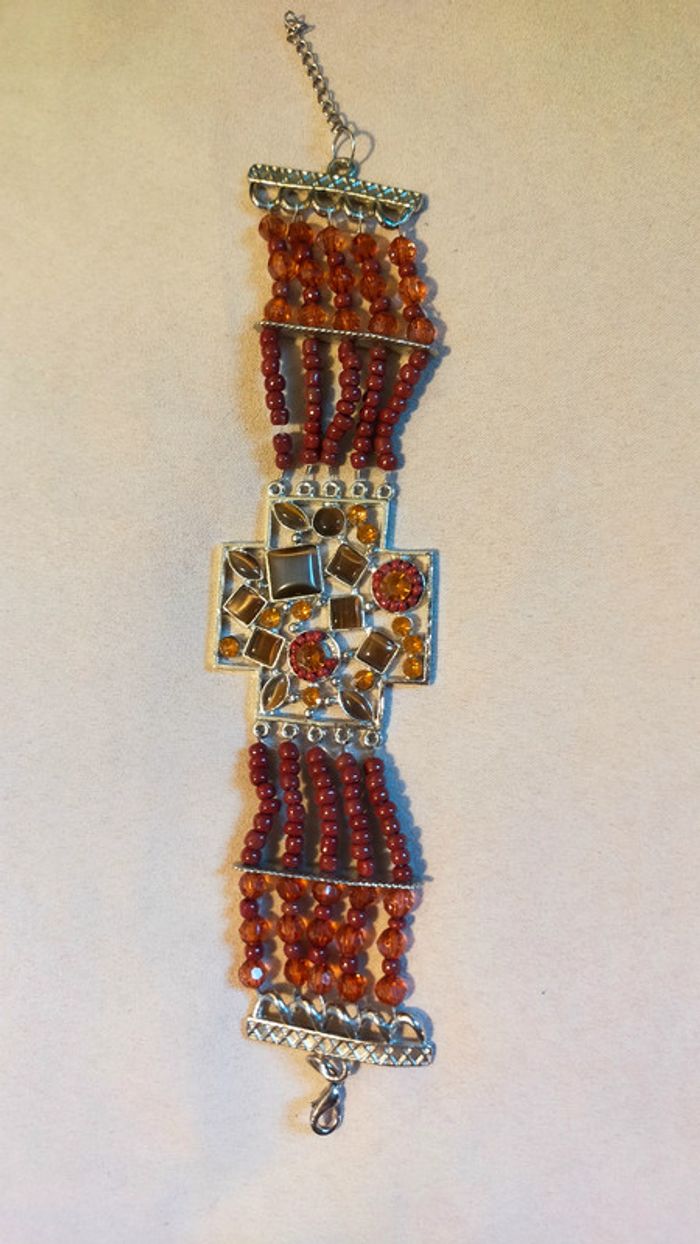 Bracelet vintage pendentif croix pierres et perles – Collection Sable & Ébène - photo numéro 1