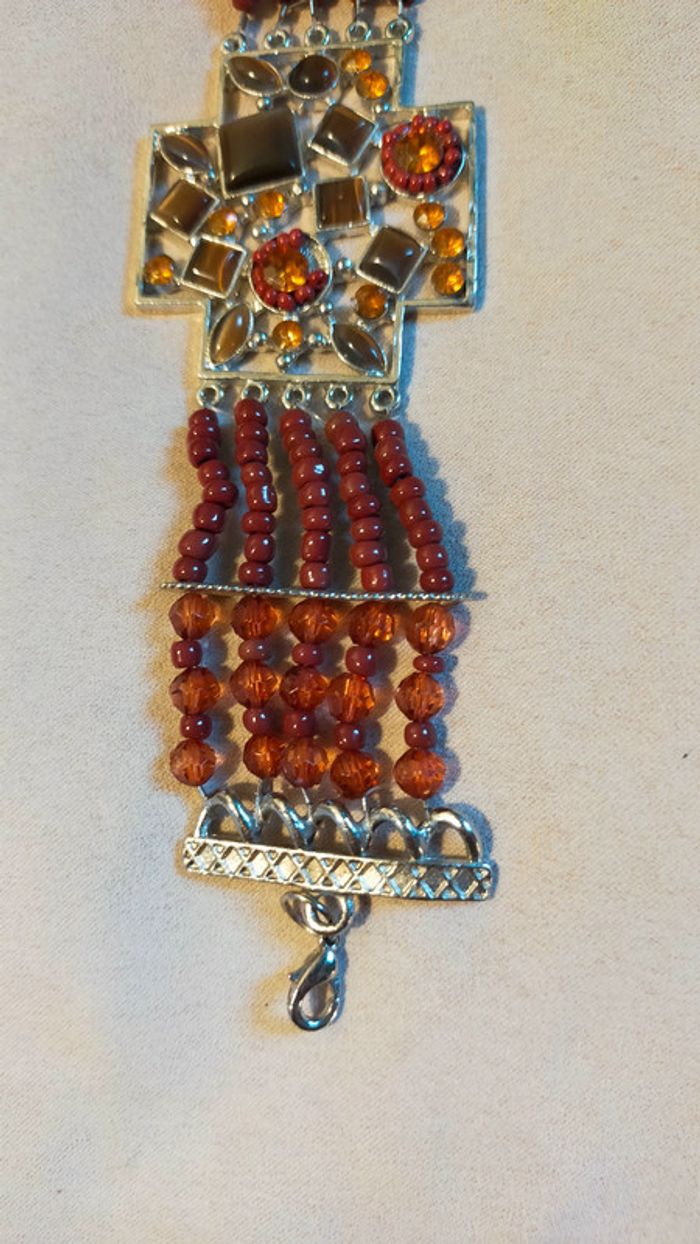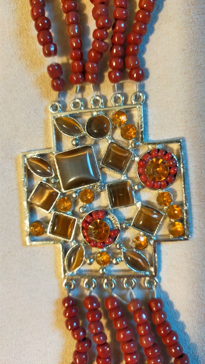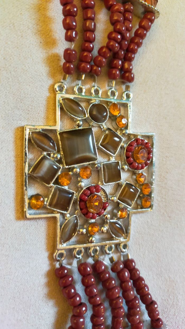 Bracelet vintage pendentif croix pierres et perles – Collection Sable & Ébène - photo numéro 7