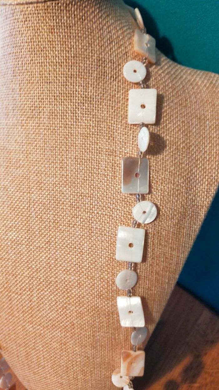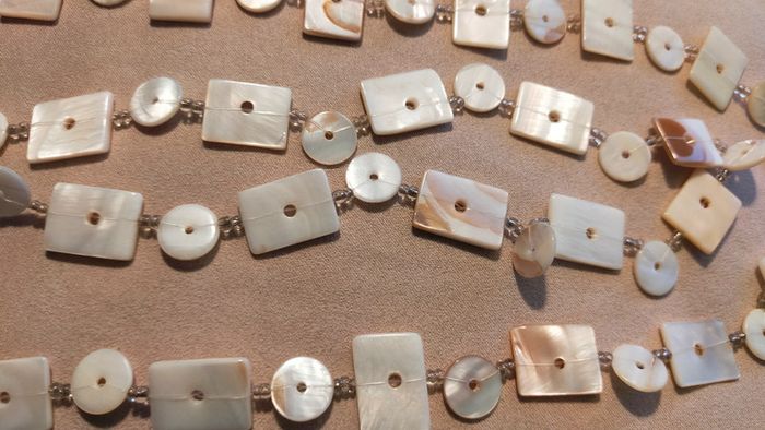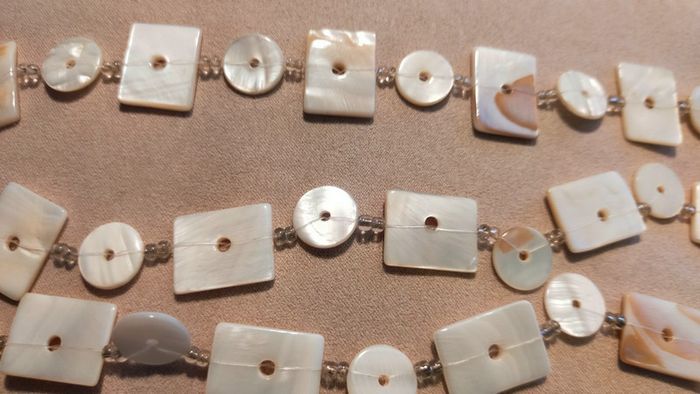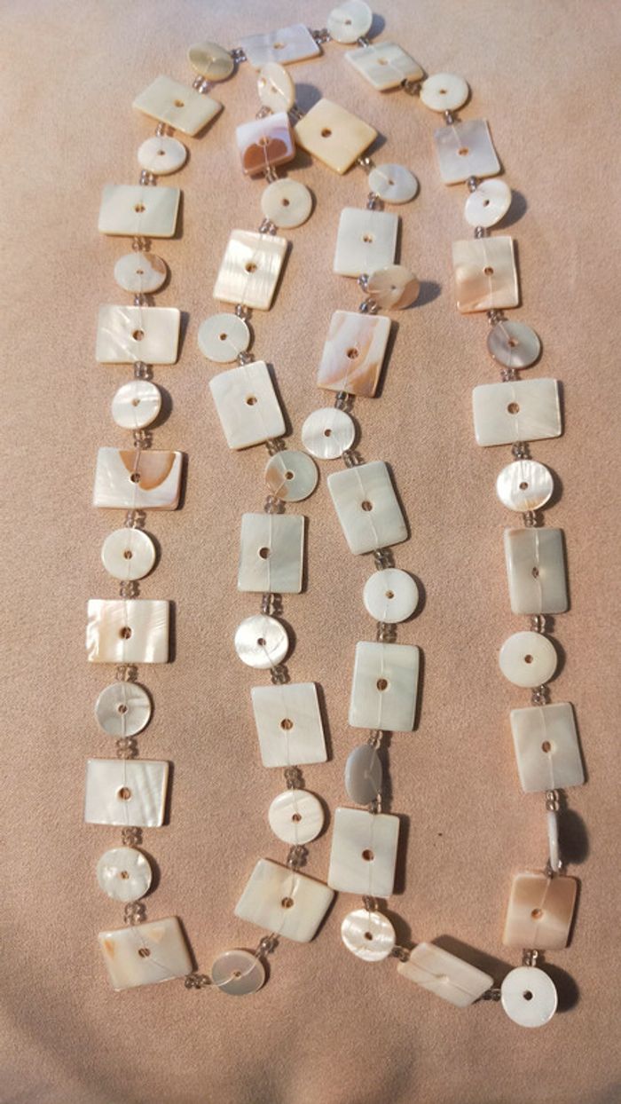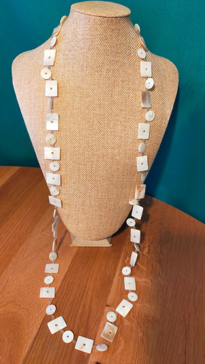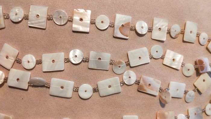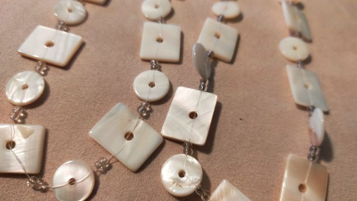 Collier long nacré en perles carrées et rondes – Collection Terres d’Ailleurs - photo numéro 1