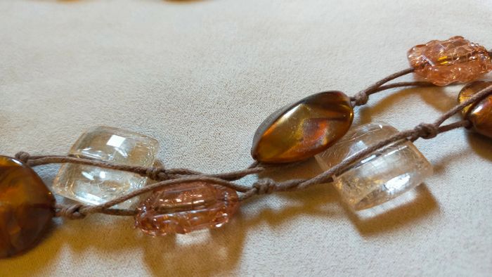 Apportez une touche d’authenticité à vos tenues avec ce superbe collier vintage au style ethnique chic. Composé de : 🔸 Gouttes en résine ancienne façon ambre, aux reflets chauds, 🔸 Perles carrées translucides en résine, légères et légèrement marbrées, 🔸 Cordon en textile tressé résistant (type coton ciré). Chaque détail évoque un artisanat inspiré des influences orientales, pour un bijou unique, travaillé et chaleureux. 🔹 Couleurs : tons ambre, beige, caramel, légèrement dorés. 🔹 Longueur totale : environ 45 cm. 🔹 Fermeture : à nouer ou par nœud réglable (pas de fermoir métallique complexe). 🔹 État : très bon état vintage. 🔹 Pièce unique idéale pour sublimer un look bohème, naturel ou ethnique chic. 💌 Je soigne l’envoi & l’emballage. Envoi rapide. 🎁 Possibilité d’envoi en lot ou d’ajouter un petit cadeau surprise en cas de plusieurs achats ! L5V #bijouxvintage #colliervintage #bijouxethnique #bijouxboheme #collierethnique #collierresine #bijouxtendance #vintagestyle #bijouxoriginaux