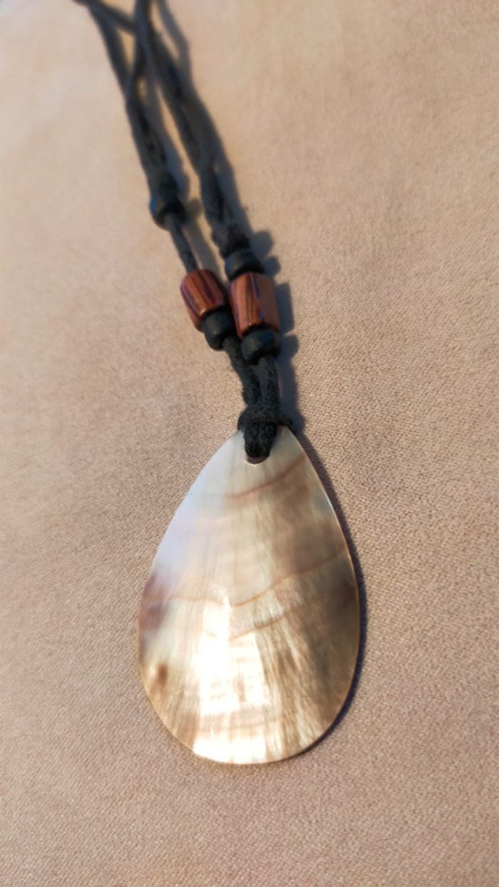 Collier pendentif nacre et bois - Collection Terres d’Ailleurs - photo numéro 1