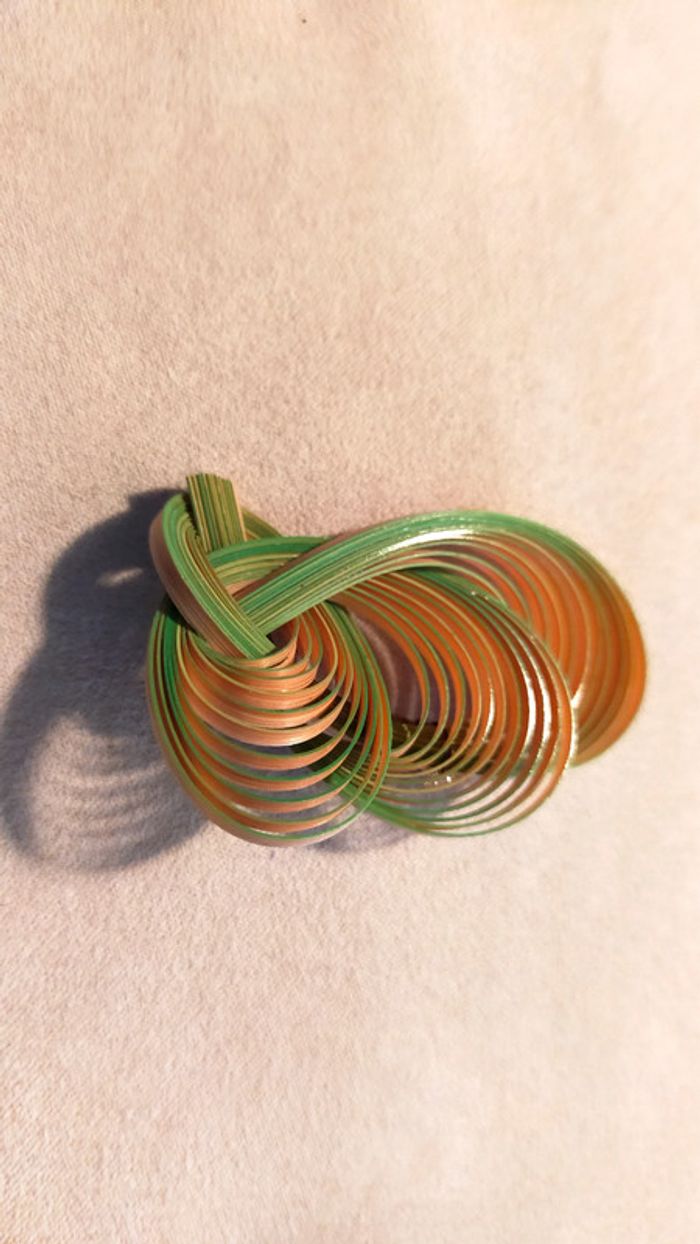 Broche vintage en fibres de bambou vernies – Vert et orangé - Collection Terres d’Ailleurs - photo numéro 4