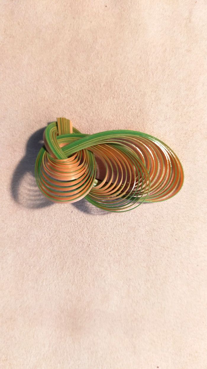 Broche vintage en fibres de bambou vernies – Vert et orangé - Collection Terres d’Ailleurs - photo numéro 1