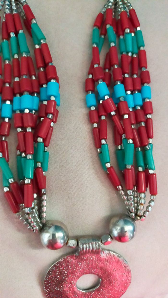 Collier vintage perlé multirangs – Pendentif argenté martelé - photo numéro 8