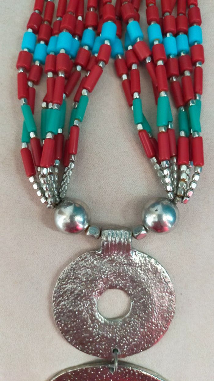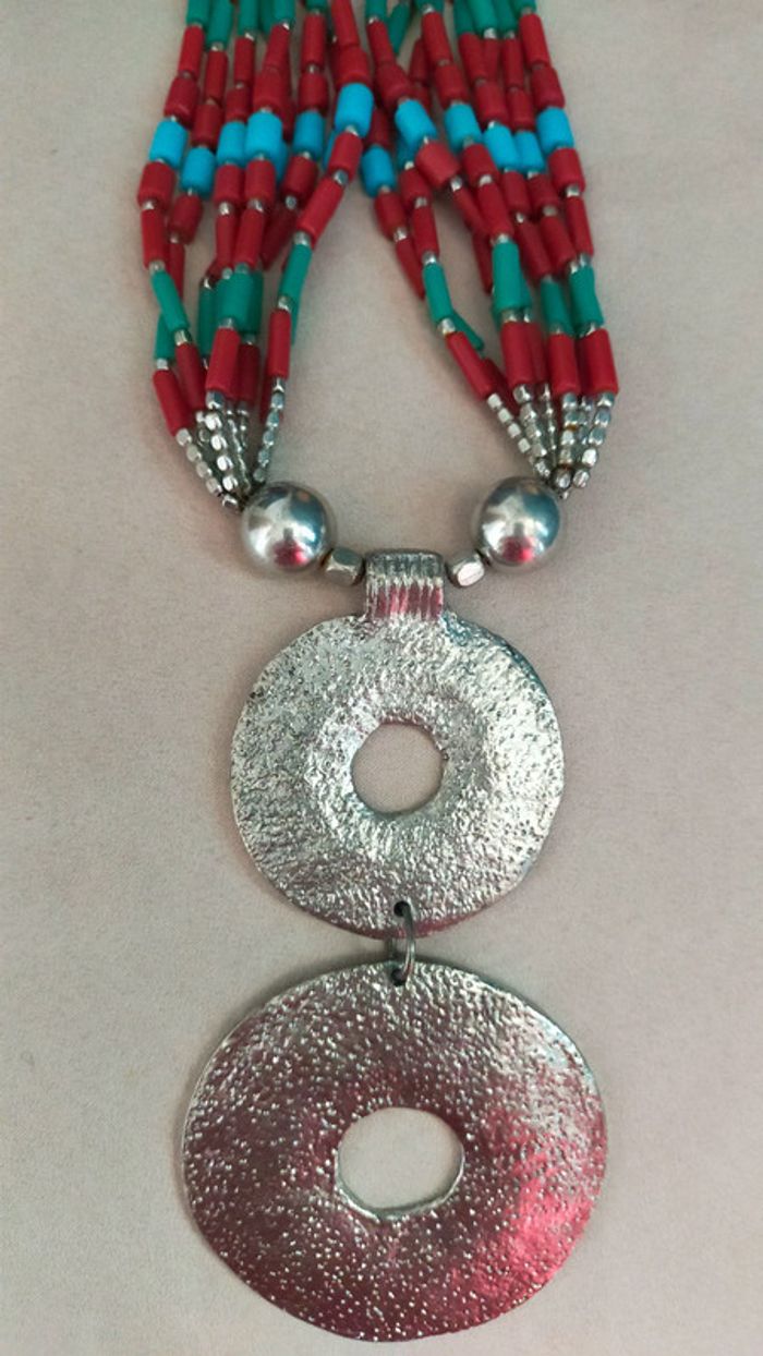 Collier vintage perlé multirangs – Pendentif argenté martelé - photo numéro 4