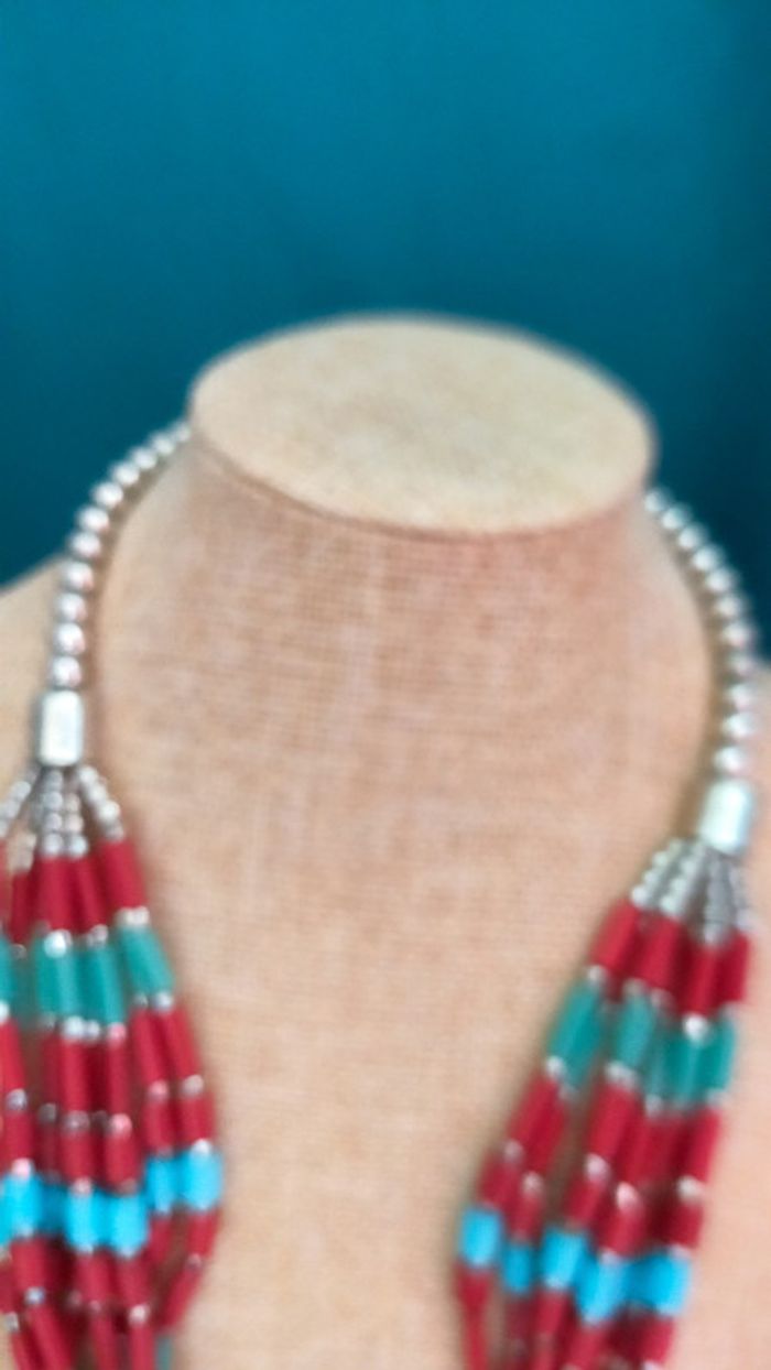 Collier vintage perlé multirangs – Pendentif argenté martelé - photo numéro 12