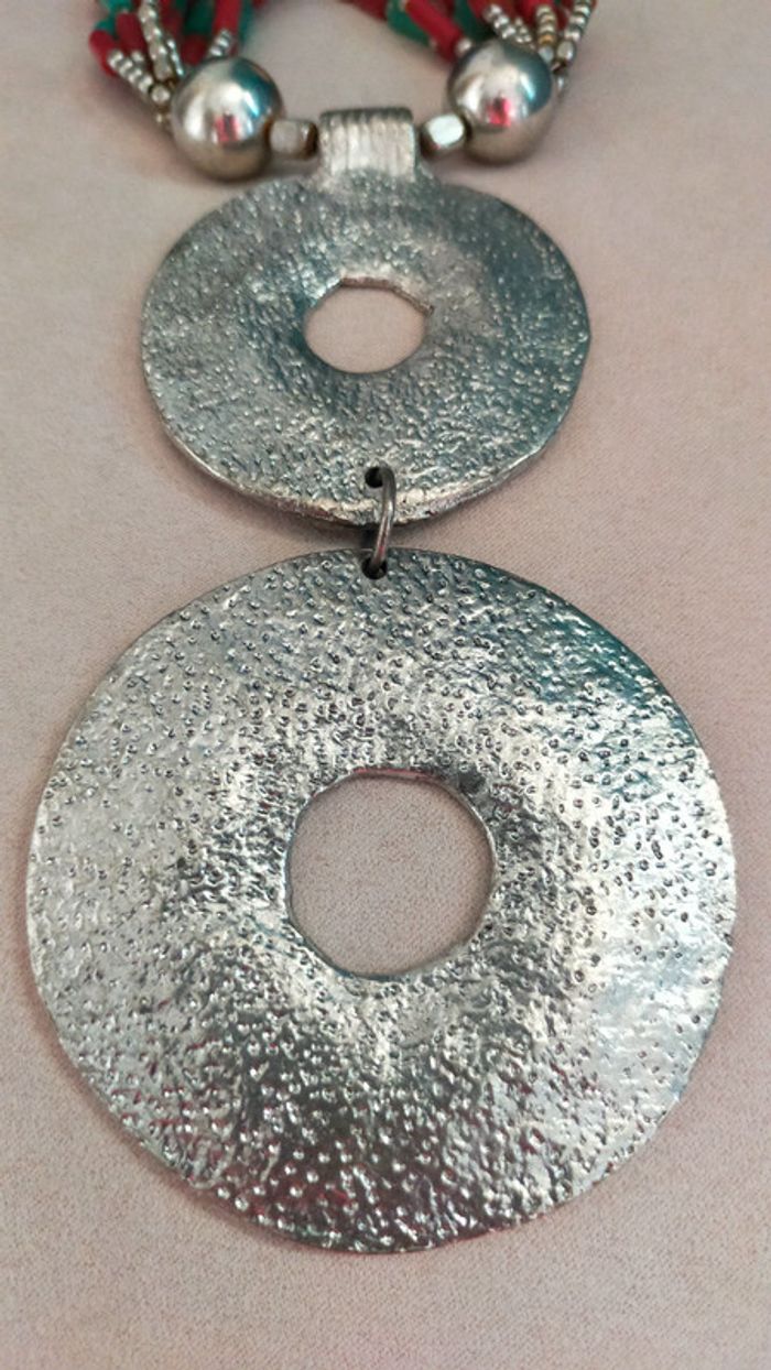 Collier vintage perlé multirangs – Pendentif argenté martelé - photo numéro 5