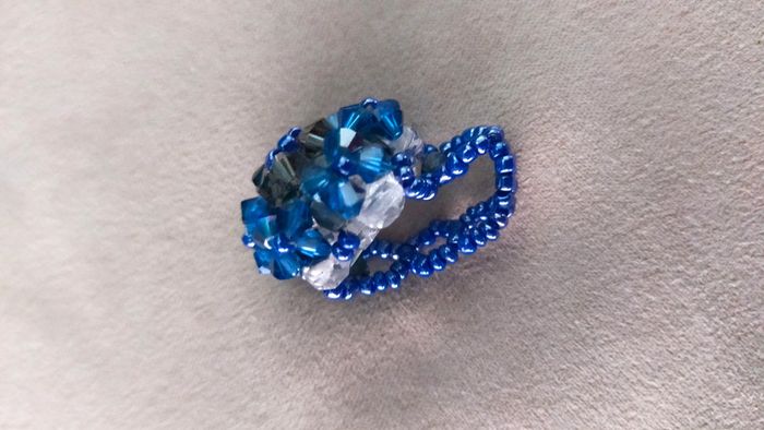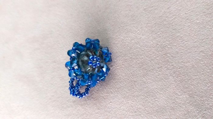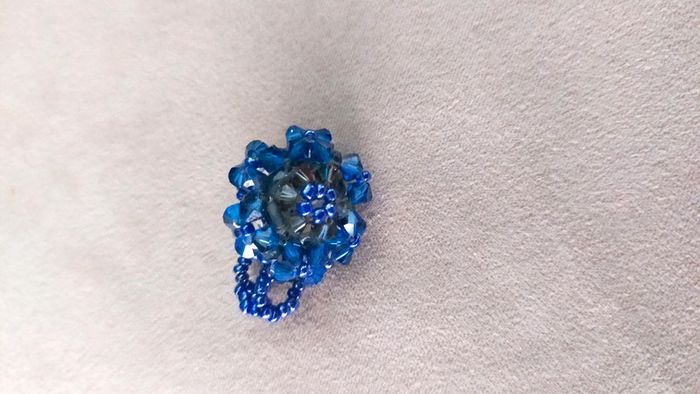 Bague fleur perles bleu foncé – Taille 47 (EU) - Collection Brume Bleue - photo numéro 2
