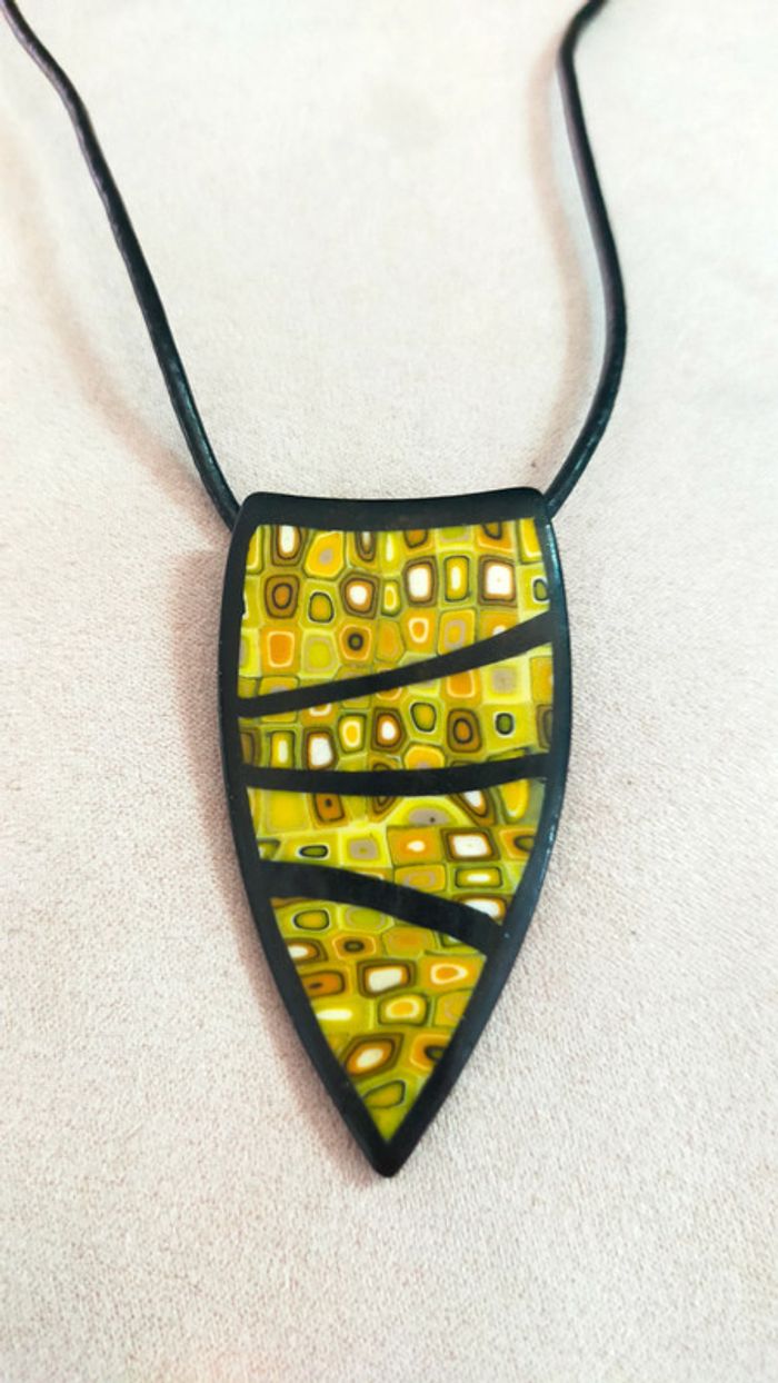 Pendentif graphique jaune & noir – Collection Émeraude Urbaine - photo numéro 5