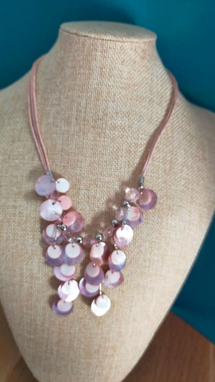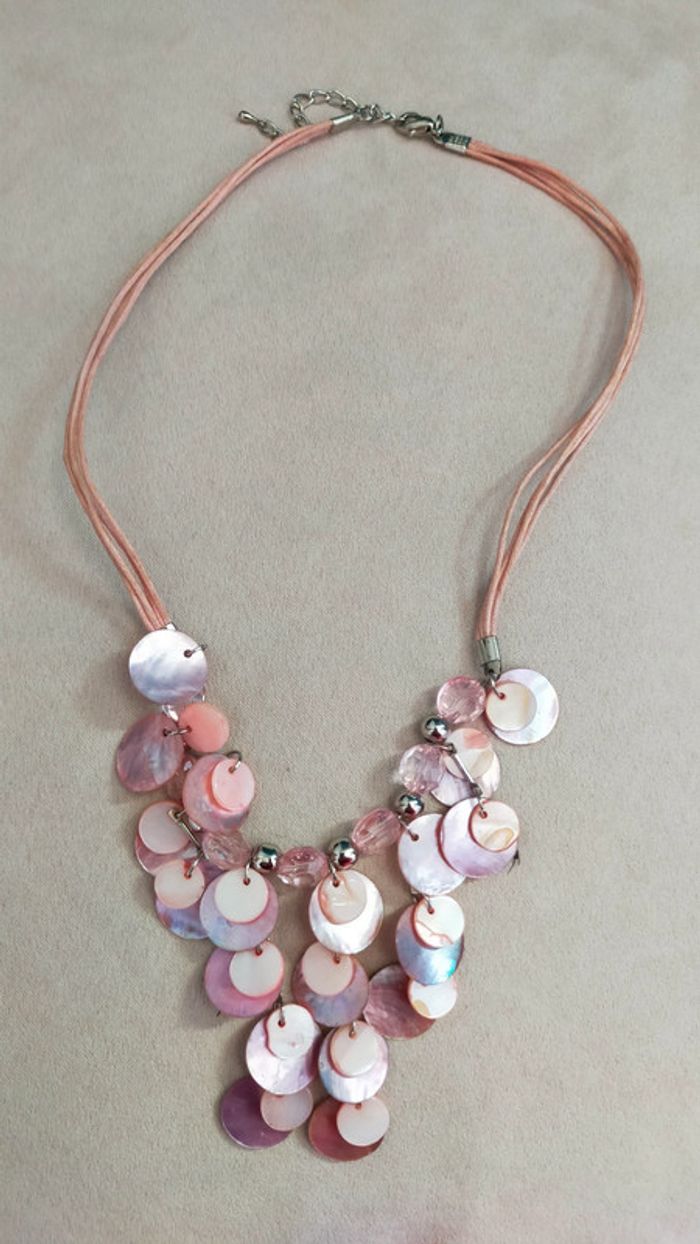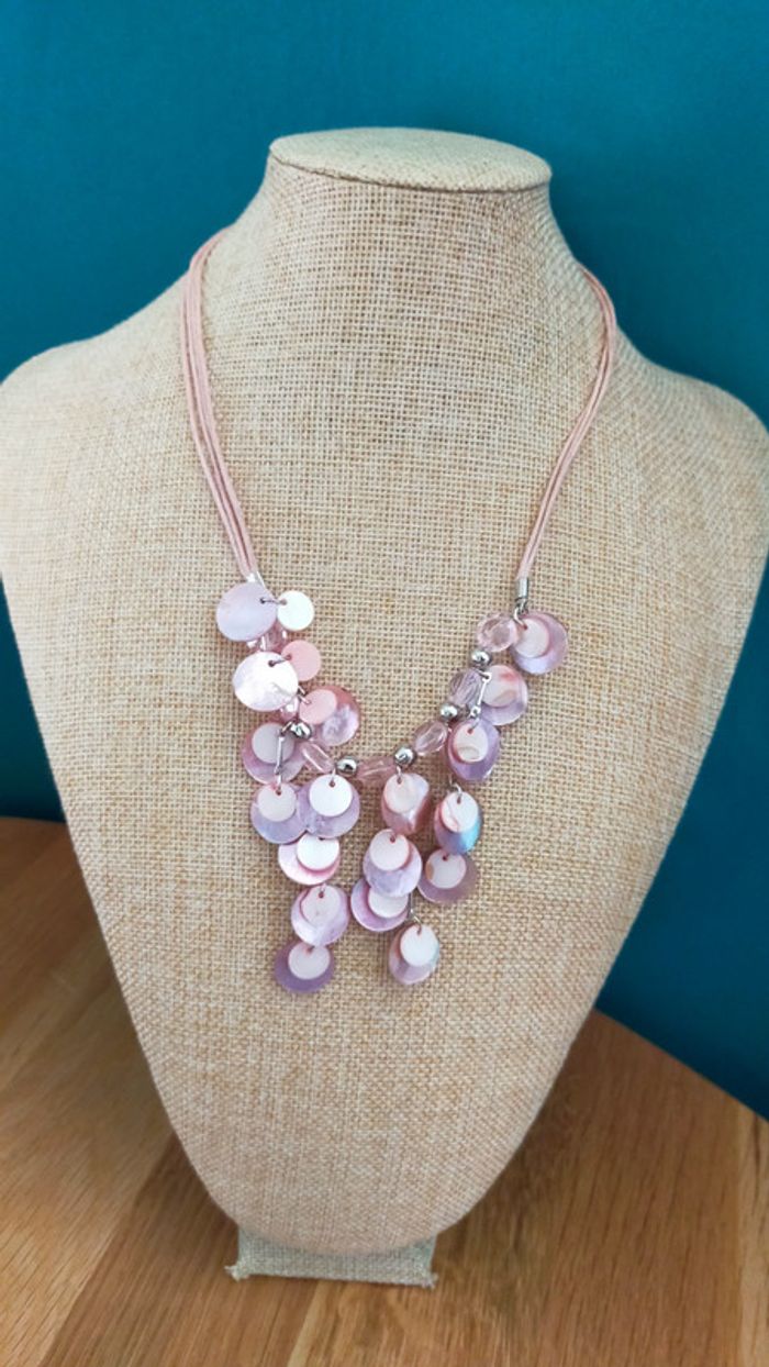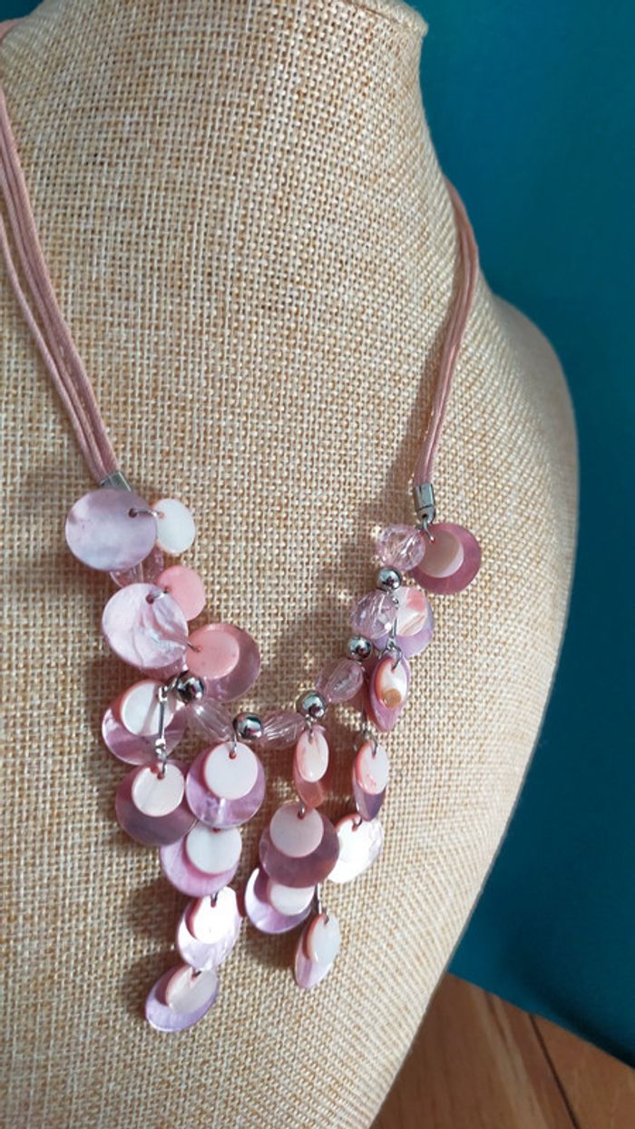 Parure vintage en nacre rose pâle – Collier + boucles d'oreilles _ Collection Nuances de Rose - photo numéro 2