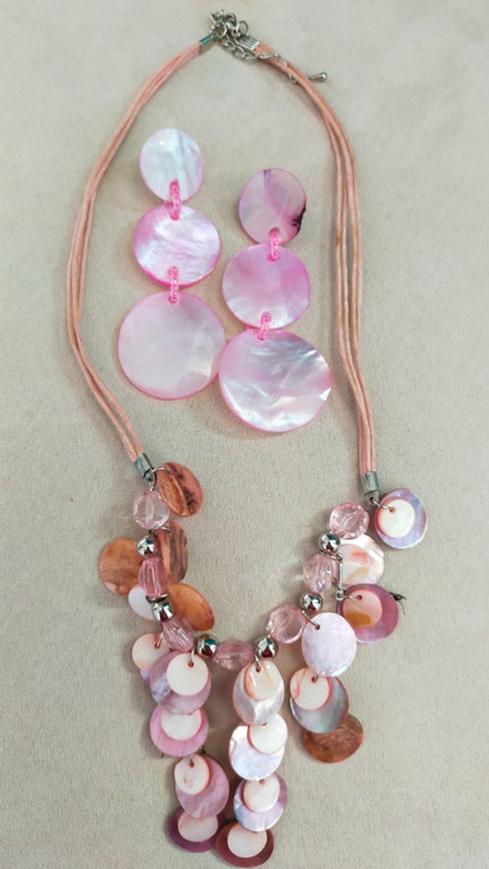 Parure vintage en nacre rose pâle – Collier + boucles d'oreilles _ Collection Nuances de Rose - photo numéro 1