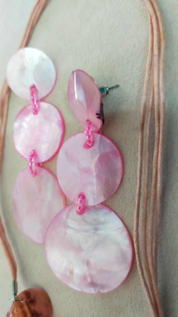 Parure vintage en nacre rose pâle – Collier + boucles d'oreilles _ Collection Nuances de Rose - photo numéro 10