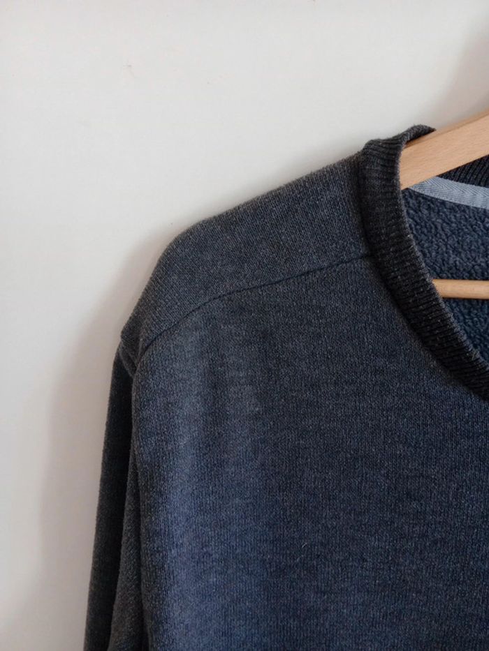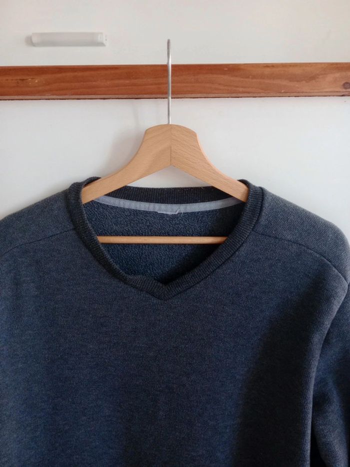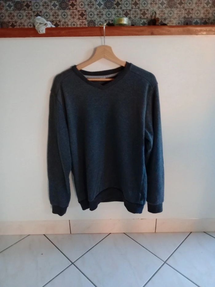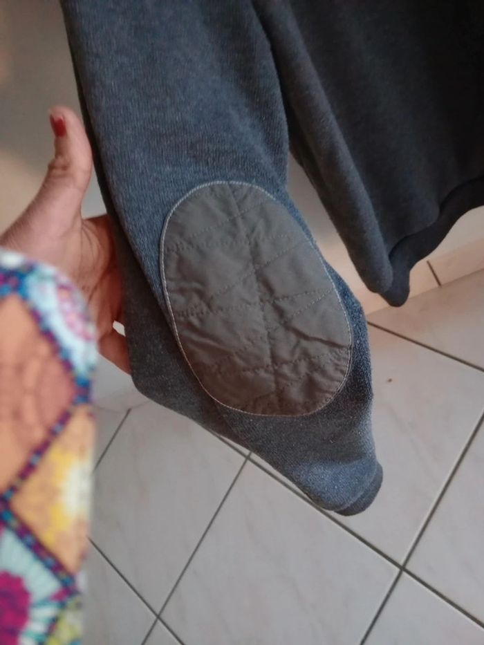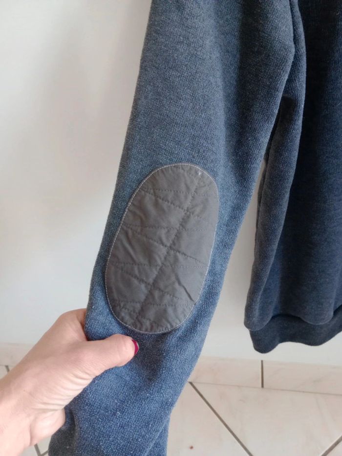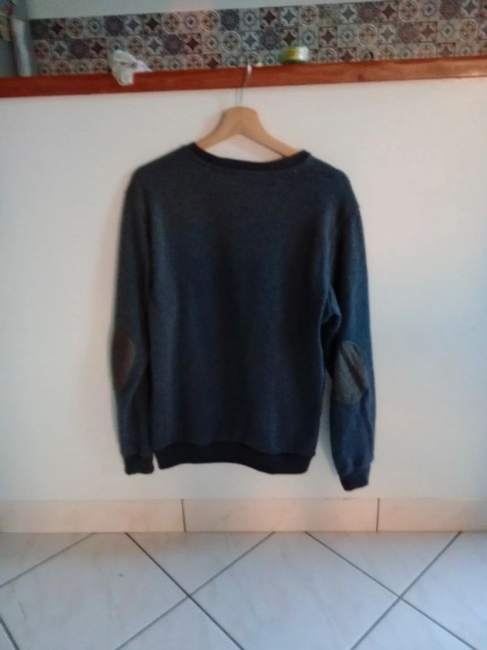 Sweat à col v , sympa avec les pièces au niveau des coudes👍🏻 lui donne un petit truc en plus Le gris au niveau du col du bas du pull et du bout des manches est plus foncé que le reste Plus d'étiquette matière ni taille #carineleray_homme