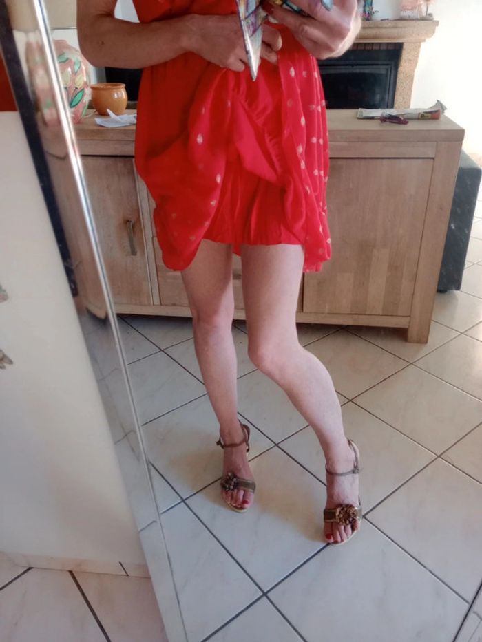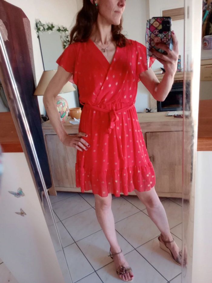 Robe 38 rouge impressions dorées c79 - photo numéro 7