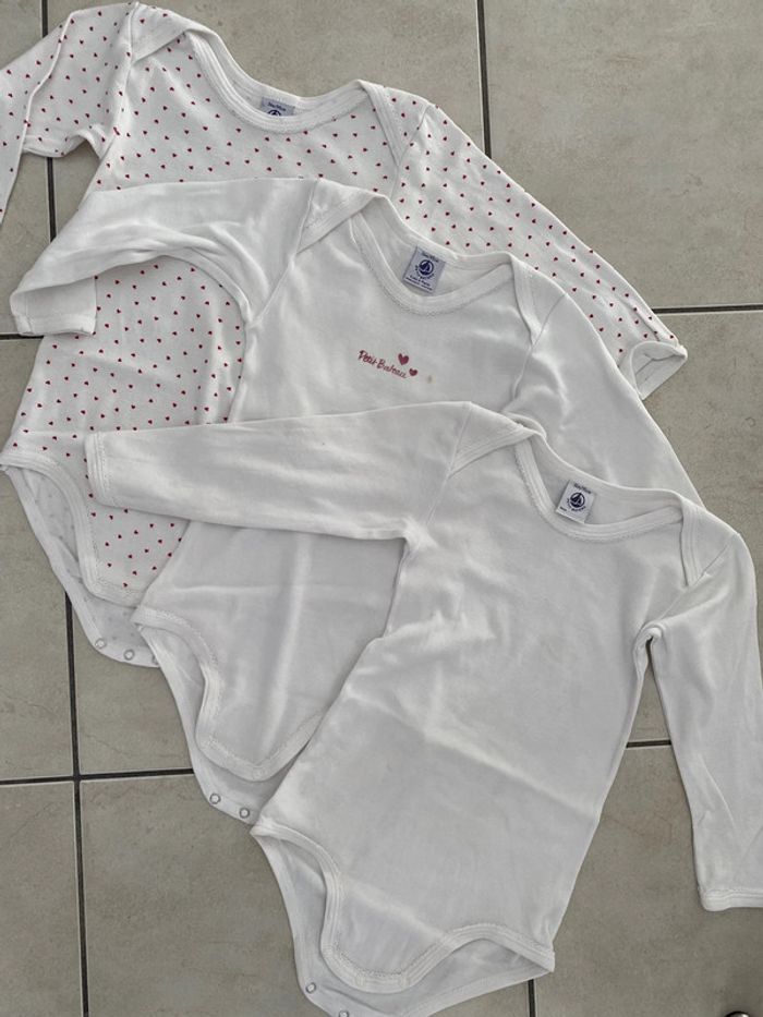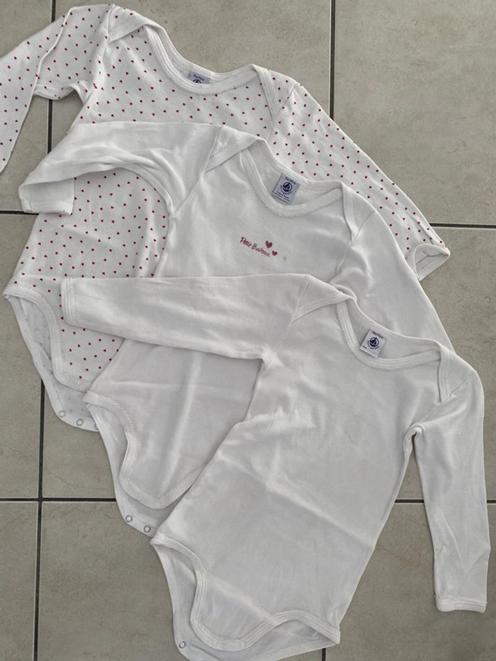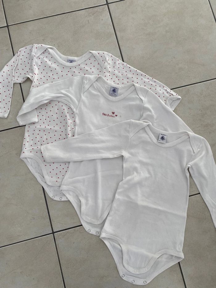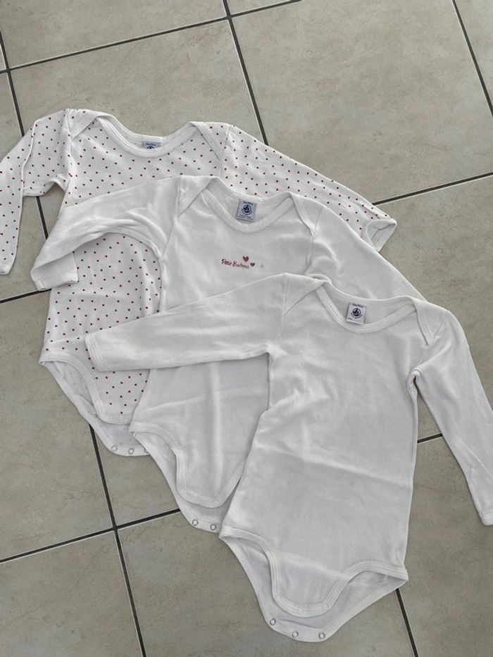 Lot de 3 body blanc coeur rouge manches longues Petit Bateau 36 mois