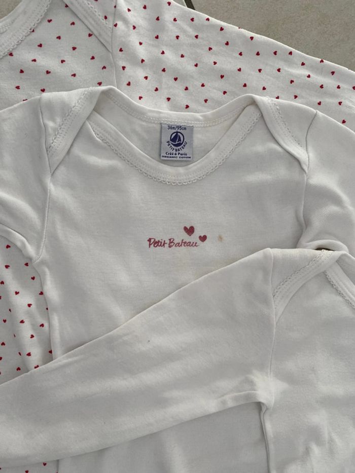 Lot de 3 body blanc coeur rouge manches longues Petit Bateau 36 mois - photo numéro 8