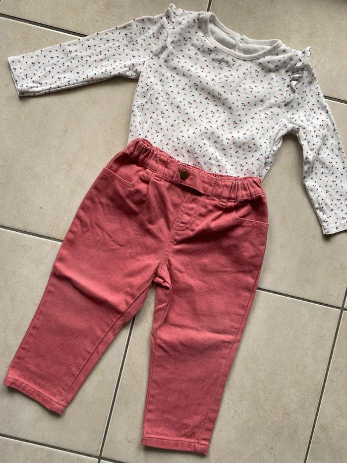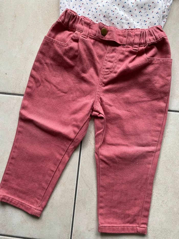 Jean mom Bout’Chou rose 18 mois T-shirt Petit Bateau 24 mois
