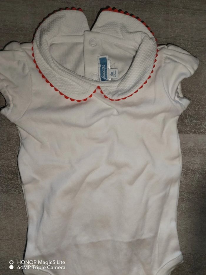 Vend 2 bodies avec col, un claudine et l'autre volant. Marque Jacadi et sergent majors. Taille 6 mois