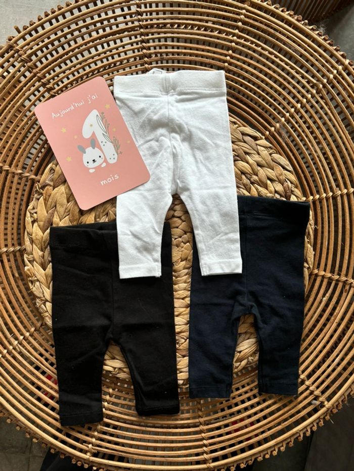Trois. Leggings de la marque Kiabi. En taille un mois, ils sont neufs, jamais porté, un noir, un bleu et un blanc. Les vêtements petits garçons c’est par ici = #vetementspetitsgarcons