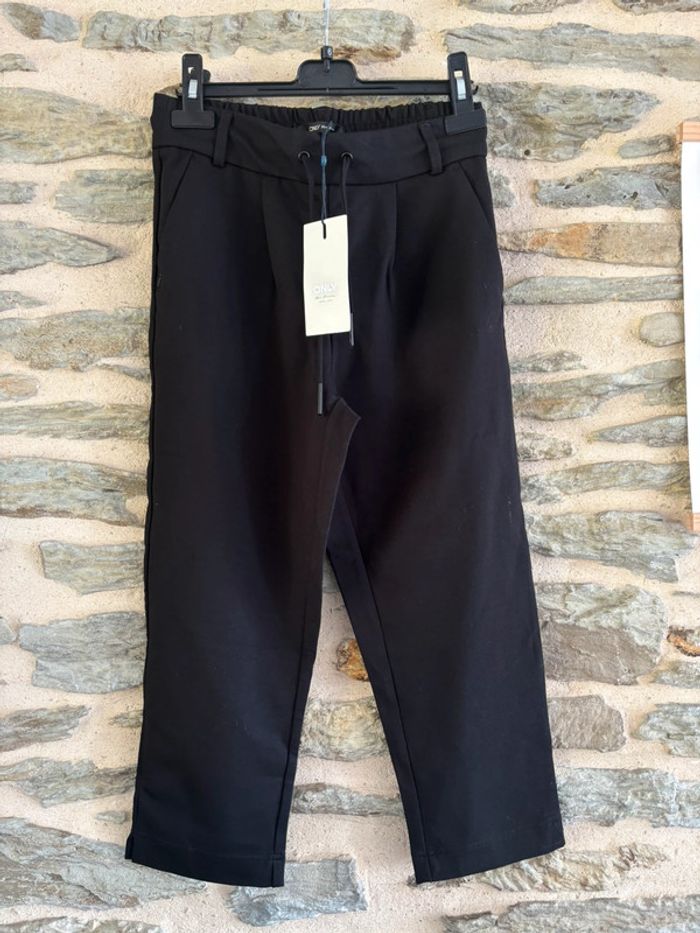 Pantalon noir en taille XS de la marque Only, il est neuf avec étiquette, coupe Chino trois quart Les vêtements femme taille XXS XS / 32-34 c’est par ici = #taillexxsxs32et34