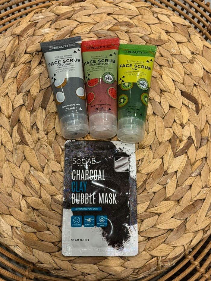 Lot de peeling doux pour le visage avec gommage naturel, ils sont neufs jamais ouvert avec un masque pour le visage au charbon Les produits de beauté divers c’est par ici = #produitsdebeautédivers