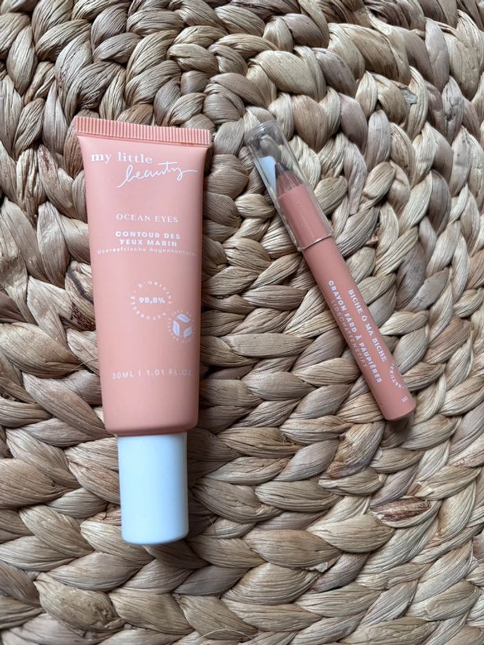 Lot pour les yeux composé d’un contour des yeux marins 98,8 % de ingrédients d’origine naturelle. Un gel frais appliqué matin au soir au niveau des poches en film couche. Ainsi qu’un crayon Fard àpaupières fabriqué en France, couleur marron glacé, neuf #maquillage #yeux Les produits de beauté divers c’est par ici = #produitsdebeautédivers
